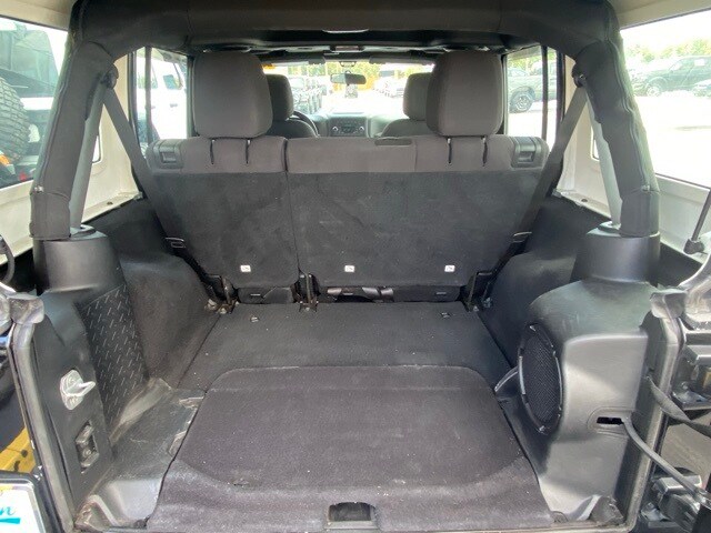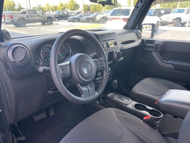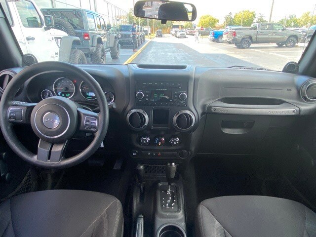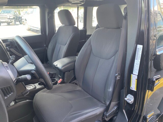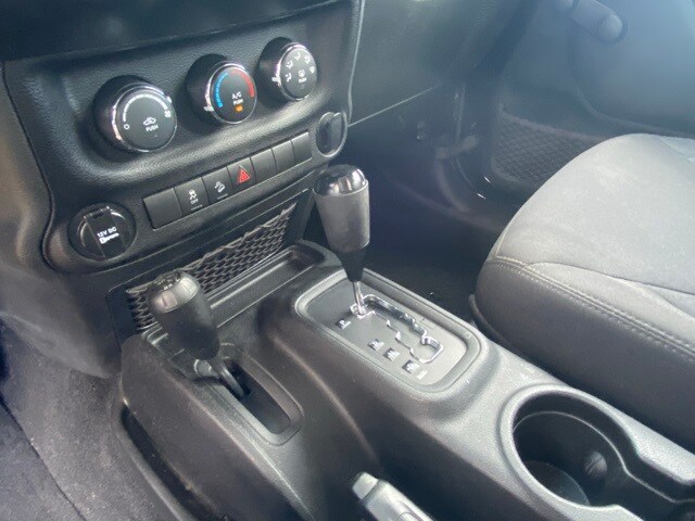 This Wrangler is well equipped with 16" x 7.0" Luxury Styled Steel Wheels, 3.21 Rear Axle Ratio, 4-Wheel Disc Brakes, 6 Speakers, ABS brakes, Air Conditioning, AM/FM radio, Brake assist, CD player, Cloth Bucket Seats, Compass, Driver door bin, Driver vanity mirror, Dual front impact airbags, Electronic Stability Control, Front anti-roll bar, Front Bucket Seats, Front Center Armrest w/Storage, Front fog lights, Integrated roll-over protection, Low tire pressure warning, Normal Duty Suspension, Occupant sensing airbag, Outside temperature display, Passenger door bin, Passenger vanity mirror, Power steering, Radio: Uconnect 130 AM/FM/CD/MP3, Rear anti-roll bar, Speed control, Split folding rear seat, Steering wheel mounted audio controls, Sunrider Soft Top, Tachometer, Tilt steering wheel, Traction control, Trip computer, and Variably intermittent wipers.