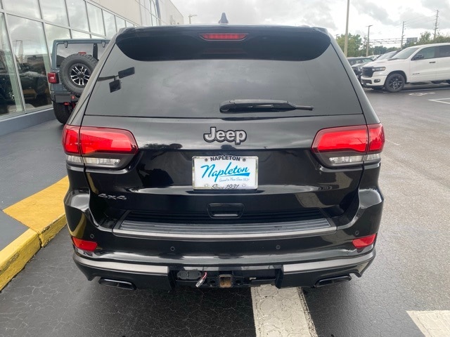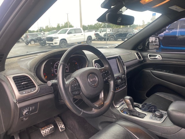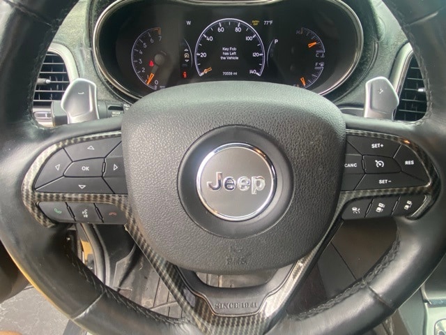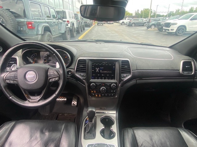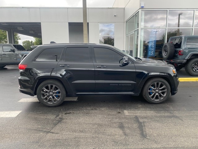This Grand Cherokee is well equipped with High Altitude II Package, Quick Order Package 2BS High Altitude (DISC) (Anodized/Light Black Chrome Interior Accents, Black Roof Molding, Body Color Door Handles, Body Color Fascias w/Granite Accents, Dark Day Light Opening Moldings, Dark Headlamp Bezel Finish, Dark Lens Taillamps, Dual Dark Chrome Exhaust Tip, Granite Crystal Exterior Accents, Granite Crystal Exterior Badging, Headlamp Washer, and Wheels: 20" x 8.0" Granite Crystal Aluminum (DISC)), Trailer Tow Group IV (DISC) (7 & 4 Pin Wiring Harness, Class IV Receiver Hitch, and Heavy-Duty Engine Cooling), 10 Speakers, 3.45 Rear Axle Ratio, 4-Wheel Disc Brakes, ABS brakes, Active Noise Control System, Air Conditioning, Alloy wheels, AM/FM radio: SiriusXM, Anti-whiplash front head restraints, Apple CarPlay/Android Auto, Audio memory, Auto High-beam Headlights, Auto-dimming door mirrors, Auto-dimming Rear-View mirror, Auto-leveling suspension, Automatic temperature control, Brake assist, Bumpers: body-color, Compass, Delay-off headlights, Driver door bin, Driver vanity mirror, Dual Bright Exhaust Tips, Dual front impact airbags, Dual front side impact airbags, Electronic Stability Control, Emergency communication system: SiriusXM Guardian, Engine Oil Cooler, Four wheel independent suspension, Front anti-roll bar, Front Bucket Seats, Front Center Armrest w/Storage, Front dual zone A/C, Front fog lights, Front License Plate Bracket, Front reading lights, Fully automatic headlights, Garage door transmitter, Genuine wood dashboard insert, Heated door mirrors, Heated front seats, Heated rear seats, Heated steering wheel, High intensity discharge headlights: Bi-Xenon, Illuminated entry, Knee airbag, Leather Shift Knob, Leather steering wheel, Leather Trim Seats w/Edge Welting, Low tire pressure warning, Manufacturer's Statement of Origin, Memory seat, Navigation System, Normal Duty Suspension, Occupant sensing airbag, Outside temperature display, Overhead airbag, Overhead console, Panic alarm, ParkView Rear Back-Up Camera, Passenger door bin, Passenger vanity mirror, Power door mirrors, Power driver seat, Power Liftgate, Power moonroof, Power passenger seat, Power steering, Power windows, Radio data system, Radio: Uconnect 4C Nav w/8.4" Display, Rain sensing wipers, Rain Sensitive Windshield Wipers, Rear anti-roll bar, Rear reading lights, Rear seat center armrest, Rear window defroster, Rear window wiper, Remote keyless entry, Roof rack: rails only, Security system, Speed control, Speed-Sensitive Wipers, Split folding rear seat, Spoiler, Steering wheel mounted audio controls, Tachometer, Telescoping steering wheel, Tilt steering wheel, Traction control, Trip computer, Turn signal indicator mirrors, Variably intermittent wipers, Ventilated front seats, and Wheels: 20" x 8.0" Tech Gray Aluminum.