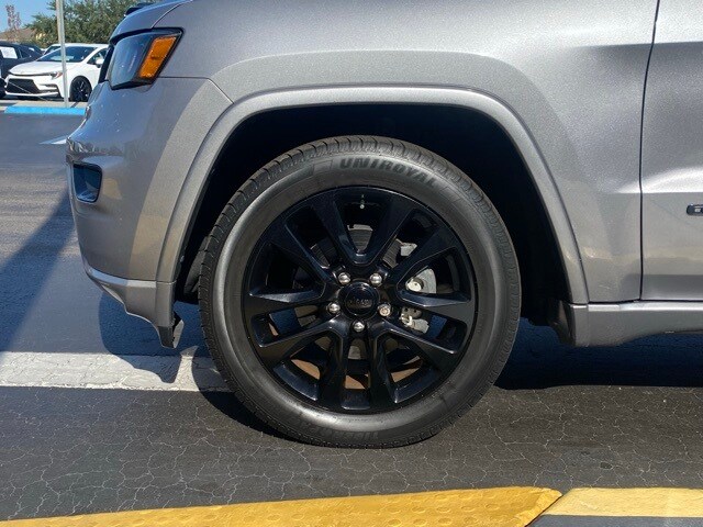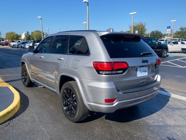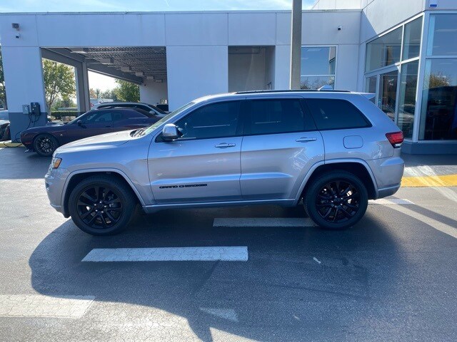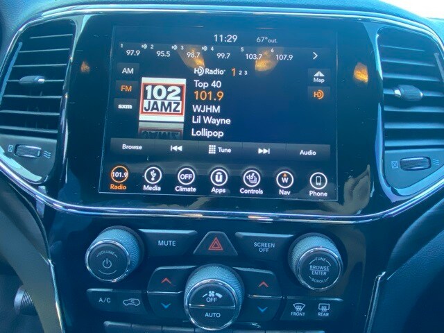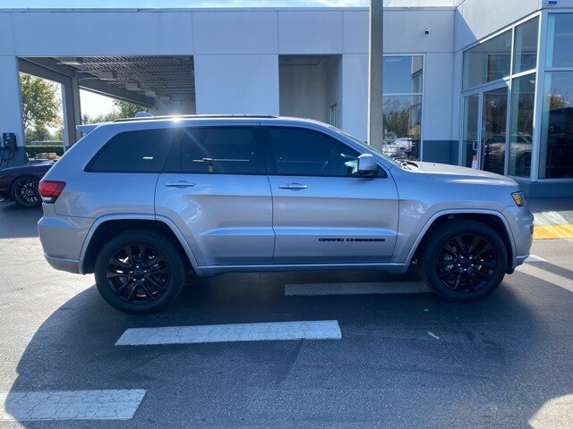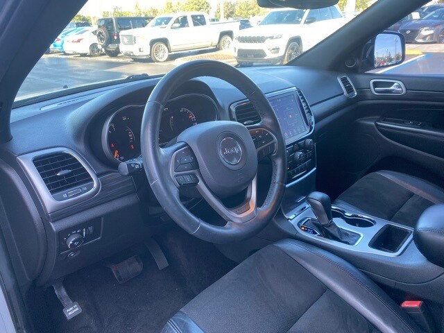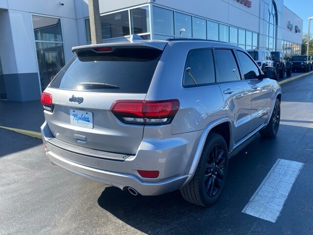 This Grand Cherokee is well equipped with Altitude IV Package, Quick Order Package 2BZ Altitude (1-Year SiriusXM Radio Service, 1-Yr SiriusXM Guardian Trial, 4G LTE Wi-Fi Hot Spot, 5-Year SiriusXM Traffic Service, 5-Year SiriusXM Travel Link Service, 8.4" Touchscreen Display, Altitude Grille, Apple CarPlay, Auto-Dimming Rear-View Mirror, Black Suede Seats w/Black Stitching, Body Color Claddings, Body Color Fascia, Body Color Shark Fin Antenna, Dark Day Light Opening Moldings, Dark Headlamp Bezel Finish, Dark Lens Taillamps, Front Accent/Body Color Fascia, Gloss Black Rear Fascia Applique, Google Android Auto, GPS Antenna Input, GPS Navigation, HD Radio, Integrated Center Stack Radio, Integrated Voice Command w/Bluetooth, Jeep Black Gloss Badging, Power 4-Way Driver Lumbar Adjust, Power 8-Way Driver/Manual Passenger Seat, Radio: Uconnect 4C Nav w/8.4" Display, Rear Accent/Body Color Fascia, Rear Fascia Black MIC Step Pad, Single Exhaust w/Bright Tip, SiriusXM Satellite Radio, SiriusXM Traffic Plus, SiriusXM Travel Link, Steering Wheel Mounted Audio Controls, USB Host Flip, and Wheels: 20" x 8.0" Gloss Black Aluminum), Security & Convenience Group (115V Auxiliary Power Outlet, Heated Front Seats, Heated Steering Wheel, Power Liftgate, Security Alarm, and Universal Garage Door Opener), 3.27 Rear Axle Ratio, 4-Wheel Disc Brakes, 506 Watt Amplifier, 6 Speakers, ABS brakes, Active Noise Control System, Air Conditioning, Alloy wheels, AM/FM radio, Anti-whiplash front head restraints, Apple CarPlay/Android Auto, Automatic temperature control, Brake assist, Bumpers: body-color, Cargo Compartment Cover, Cloth Bucket Seats, Compass, Delay-off headlights, Driver door bin, Driver vanity mirror, Dual front impact airbags, Dual front side impact airbags, Eco Suspension I, Electronic Stability Control, Four wheel independent suspension, Front anti-roll bar, Front Bucket Seats, Front Center Armrest w/Storage, Front dual zone A/C, Front fog lights, Front reading lights, Fully automatic headlights, Heated door mirrors, Illuminated entry, Knee airbag, Leather Shift Knob, Low tire pressure warning, Occupant sensing airbag, Outside temperature display, Overhead airbag, Overhead console, Panic alarm, ParkView Rear Back-Up Camera, Passenger door bin, Passenger vanity mirror, Power door mirrors, Power steering, Power Sunroof, Power windows, Premium Alpine Speaker System, Radio data system, Radio: Uconnect 4 w/7" Display, Rear anti-roll bar, Rear reading lights, Rear seat center armrest, Rear window defroster, Rear window wiper, Remote keyless entry, Speed control, Speed-sensing steering, Speed-Sensitive Wipers, Split folding rear seat, Spoiler, Steering wheel mounted audio controls, Tachometer, Telescoping steering wheel, Tilt steering wheel, Traction control, Trip computer, Variably intermittent wipers, and Wheels: 17" x 8.0" Silver Aluminum.