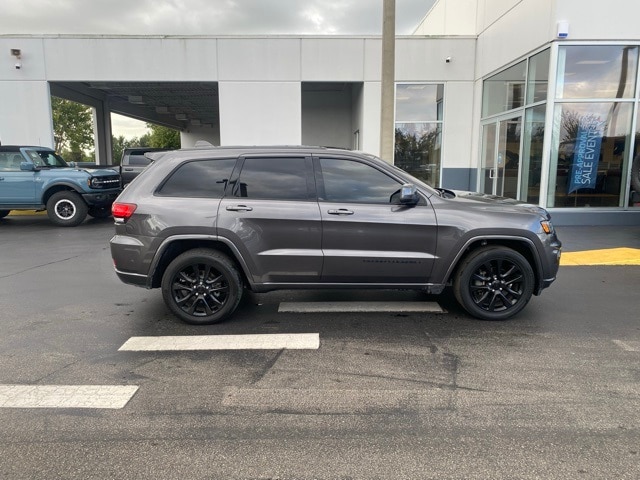 This Grand Cherokee is well equipped with Altitude IV Package, Quick Order Package 2BZ Altitude (1-Year SiriusXM Radio Service, 1-Yr SiriusXM Guardian Trial, 4G LTE Wi-Fi Hot Spot, 5-Year SiriusXM Traffic Service, 5-Year SiriusXM Travel Link Service, 8.4" Touchscreen Display, Altitude Grille, Apple CarPlay, Auto-Dimming Rear-View Mirror, Black Suede Seats w/Black Stitching, Body Color Claddings, Body Color Fascia, Body Color Shark Fin Antenna, Dark Day Light Opening Moldings, Dark Headlamp Bezel Finish, Dark Lens Taillamps, Front Accent/Body Color Fascia, Gloss Black Rear Fascia Applique, Google Android Auto, GPS Antenna Input, GPS Navigation, HD Radio, Integrated Center Stack Radio, Integrated Voice Command w/Bluetooth, Jeep Black Gloss Badging, Power 4-Way Driver Lumbar Adjust, Power 8-Way Driver/Manual Passenger Seat, Radio: Uconnect 4C Nav w/8.4" Display, Rear Accent/Body Color Fascia, Rear Fascia Black MIC Step Pad, Single Exhaust w/Bright Tip, SiriusXM Satellite Radio, SiriusXM Traffic Plus, SiriusXM Travel Link, Steering Wheel Mounted Audio Controls, USB Host Flip, and Wheels: 20" x 8.0" Gloss Black Aluminum), Security & Convenience Group (115V Auxiliary Power Outlet, Heated Front Seats, Heated Steering Wheel, Power Liftgate, Security Alarm, and Universal Garage Door Opener), 3.27 Rear Axle Ratio, 4-Wheel Disc Brakes, 506 Watt Amplifier, 6 Speakers, ABS brakes, Active Noise Control System, Air Conditioning, Alloy wheels, AM/FM radio, Anti-whiplash front head restraints, Apple CarPlay/Android Auto, Automatic temperature control, Brake assist, Bumpers: body-color, Cargo Compartment Cover, Cloth Bucket Seats, Compass, Delay-off headlights, Driver door bin, Driver vanity mirror, Dual front impact airbags, Dual front side impact airbags, Eco Suspension I, Electronic Stability Control, Four wheel independent suspension, Front anti-roll bar, Front Bucket Seats, Front Center Armrest w/Storage, Front dual zone A/C, Front fog lights, Front reading lights, Fully automatic headlights, Heated door mirrors, Illuminated entry, Knee airbag, Leather Shift Knob, Low tire pressure warning, Occupant sensing airbag, Outside temperature display, Overhead airbag, Overhead console, Panic alarm, ParkView Rear Back-Up Camera, Passenger door bin, Passenger vanity mirror, Power door mirrors, Power steering, Power Sunroof, Power windows, Premium Alpine Speaker System, Radio data system, Radio: Uconnect 4 w/7" Display, Rear anti-roll bar, Rear reading lights, Rear seat center armrest, Rear window defroster, Rear window wiper, Remote keyless entry, Speed control, Speed-sensing steering, Speed-Sensitive Wipers, Split folding rear seat, Spoiler, Steering wheel mounted audio controls, Tachometer, Telescoping steering wheel, Tilt steering wheel, Traction control, Trip computer, Variably intermittent wipers, and Wheels: 17" x 8.0" Silver Aluminum.