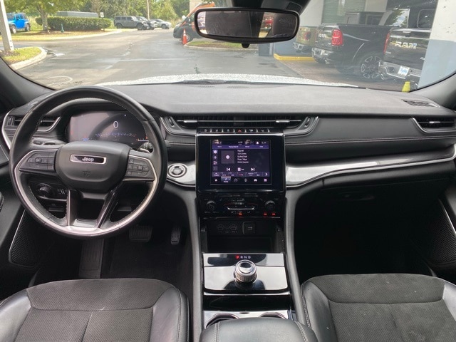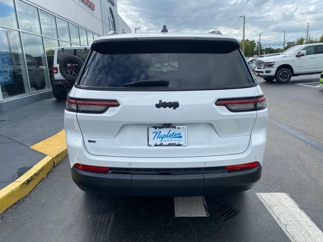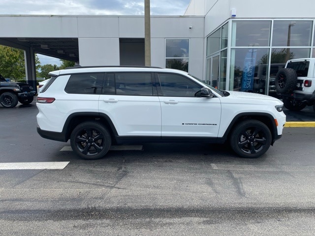 This Grand Cherokee L is well equipped with Altitude Appearance Package, Quick Order Package 22B Altitude (115V Auxiliary Power Outlet, 3rd Row Charge-Only USB Ports, Black Headliner, Bridgestone Brand Tires, Delete Laredo Badge, Gloss Black Exterior Accents, Heated Front Seats, Heated Steering Wheel, Leather Trimmed Bucket Seats, Leather Wrapped Steering Wheel, Molded In Color Black/Gloss Black Roof Rails, Power Liftgate, Rain Sensitive Windshield Wipers, Remote Start System, Selectable Tire Fill Alert, Wheels: 20" x 8.5" Gloss Black Painted Aluminum, and Wireless Charging Pad), 3.45 Rear Axle Ratio, 3rd row seats: split-bench, 4-Wheel Disc Brakes, 6 Speakers, ABS brakes, Air Conditioning, Alloy wheels, AM/FM radio, Anti-whiplash front head restraints, Apple CarPlay/Android Auto, Automatic temperature control, Brake assist, Bumpers: body-color, Cloth Seats, Compass, Delay-off headlights, Driver door bin, Driver vanity mirror, Dual front impact airbags, Dual front side impact airbags, Electronic Stability Control, Emergency communication system, Four wheel independent suspension, Front anti-roll bar, Front Bucket Seats, Front Center Armrest w/Storage, Front dual zone A/C, Front reading lights, Fully automatic headlights, Heated door mirrors, Illuminated entry, Knee airbag, Low tire pressure warning, Manual Fold Seatbacks, Normal Duty Suspension, Occupant sensing airbag, Outside temperature display, Overhead airbag, Overhead console, Panic alarm, ParkView Rear Back-Up Camera, Passenger door bin, Passenger vanity mirror, Power door mirrors, Power driver seat, Power steering, Power windows, Radio data system, Radio: Uconnect 5 w/8.4" Display, Rear air conditioning, Rear anti-roll bar, Rear reading lights, Rear window defroster, Rear window wiper, Reclining 3rd row seat, Remote keyless entry, Roof rack: rails only, Security system, Speed control, Speed-Sensitive Wipers, Split folding rear seat, Spoiler, Steering wheel mounted audio controls, Tachometer, Telescoping steering wheel, Tilt steering wheel, Traction control, Trip computer, Turn signal indicator mirrors, Variably intermittent wipers, and Wheels: 18" x 8.0" Fully Painted Aluminum.