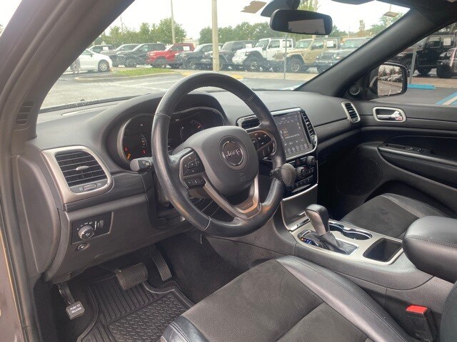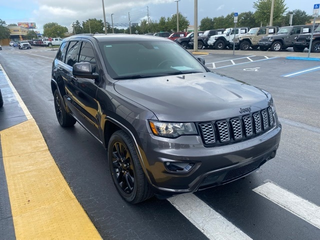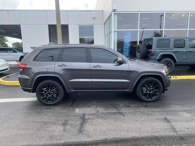 This Grand Cherokee is well equipped with Altitude Appearance Package (Altitude Grille, Black Roof Molding, Body Color Claddings, Body Color Fascia, Body Color Shark Fin Antenna, Bridgestone Brand Tires, Dark Day Light Opening Moldings, Dark Headlamp Bezel Finish, Dark Lens Taillamps, Delete Laredo Badge, Front Accent/Body Color Fascia, Gloss Black Jeep Badging, Gloss Black Rear Fascia Applique, Rear Accent/Body Color Fascia, Rear Fascia Black Molded in Color Step Pad, Single Exhaust w/Bright Tip, and Wheels: 20" x 8.0" Gloss Black Aluminum), Quick Order Package 2BM Laredo X (1-Year SiriusXM Guardian Trial, 4G LTE Wi-Fi Hot Spot, 5-Year SiriusXM Traffic Service, 5-Year SiriusXM Travel Link Service, 8.4" Touchscreen Display, Apple CarPlay, Black Suede Seats w/Black Stitching, Google Android Auto, GPS Antenna Input, GPS Navigation, HD Radio, Heated Front Seats, Heated Steering Wheel, Integrated Voice Command w/Bluetooth, Power Liftgate, Radio: Uconnect 4C Nav w/8.4" Display, Remote Start System, Security Alarm, SiriusXM Satellite Radio, SiriusXM Traffic Plus, SiriusXM Travel Link, Steering Wheel Mounted Audio Controls, and Universal Garage Door Opener), 3.27 Rear Axle Ratio, 4-Wheel Disc Brakes, 6 Speakers, ABS brakes, Air Conditioning, Alloy wheels, AM/FM radio: SiriusXM, Anti-whiplash front head restraints, Apple CarPlay/Android Auto, Automatic temperature control, Brake assist, Bumpers: body-color, Cloth Bucket Seats, Compass, Delay-off headlights, Driver door bin, Driver vanity mirror, Dual front impact airbags, Dual front side impact airbags, Eco Suspension I, Electronic Stability Control, Four wheel independent suspension, Front anti-roll bar, Front Bucket Seats, Front Center Armrest w/Storage, Front dual zone A/C, Front fog lights, Front reading lights, Fully automatic headlights, Heated door mirrors, Illuminated entry, Knee airbag, Leather Shift Knob, Low tire pressure warning, Occupant sensing airbag, Outside temperature display, Overhead airbag, Overhead console, Panic alarm, ParkView Rear Back-Up Camera, Passenger door bin, Passenger vanity mirror, Power door mirrors, Power driver seat, Power steering, Power windows, Radio data system, Radio: Uconnect 4 w/7" Display, Rear anti-roll bar, Rear reading lights, Rear seat center armrest, Rear window defroster, Rear window wiper, Remote keyless entry, Roof rack: rails only, Speed control, Speed-sensing steering, Speed-Sensitive Wipers, Split folding rear seat, Spoiler, Steering wheel mounted audio controls, Tachometer, Telescoping steering wheel, Tilt steering wheel, Traction control, Trip computer, Variably intermittent wipers, and Wheels: 18" x 8.0" Fine Silver Aluminum.