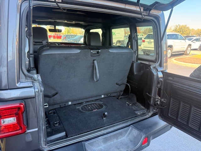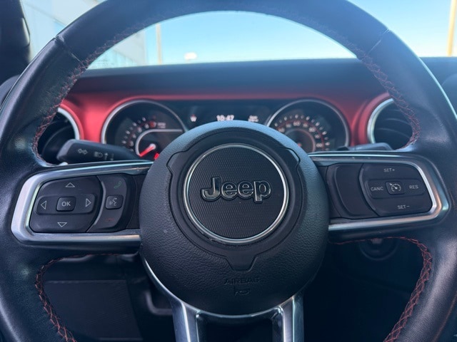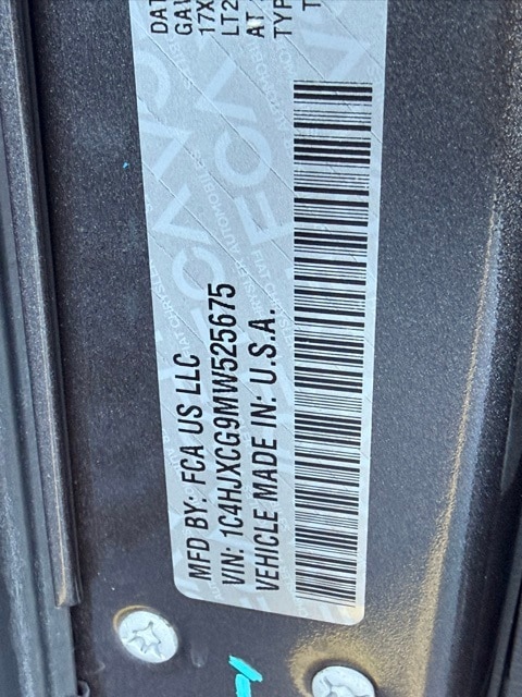 This Wrangler is well equipped with 8.4" Radio & Premium Audio Group (5-Year SiriusXM Travel Link Service, Alpine Premium Audio System, Auto-Dimming Rear-View Mirror, GPS Navigation, HD Radio, Radio: Uconnect 4C Nav w/8.4" Display, and SiriusXM Traffic Plus), LED Lighting Group (Daytime Running Lamps LED Accents and LED Taillamps), Quick Order Package 25R, Safety Group (ParkSense Rear Park Assist System), Steel Bumper Group (Steel Front Bumper and Steel Rear Bumper), Trailer Tow & HD Electrical Group (7 & 4 Pin Wiring Harness, 700 Amp Maintenance Free Battery, and Class II Receiver Hitch), 4-Wheel Disc Brakes, 4.10 Rear Axle Ratio, 8 Speakers, ABS brakes, Air Conditioning, Alloy wheels, AM/FM radio: SiriusXM, Apple CarPlay/Android Auto, Automatic temperature control, Body Color 3-Piece Hard Top, Body Color Fender Flares, Brake assist, Compass, Delay-off headlights, Driver door bin, Driver vanity mirror, Dual front impact airbags, Dual front side impact airbags, Electronic Stability Control, Front anti-roll bar, Front Bucket Seats, Front Center Armrest w/Storage, Front dual zone A/C, Front fog lights, Front reading lights, Fully automatic headlights, Garage door transmitter, Heated door mirrors, Illuminated entry, Integrated roll-over protection, Leather steering wheel, Low tire pressure warning, Manuf Statement of Origin, MOPAR Hardtop Headliner, MOPAR Mesh Sunbonnet Top, Occupant sensing airbag, Outside temperature display, Panic alarm, ParkView Rear Back-Up Camera, Passenger door bin, Passenger vanity mirror, Performance Suspension, Power door mirrors, Power steering, Power windows, Premium Cloth Low-Back Bucket Seats, Radio data system, Radio: Uconnect 4 w/7" Display, Rear anti-roll bar, Rear reading lights, Rear Window Defroster, Remote keyless entry, Remote Start System, Security system, Speed control, Steering wheel mounted audio controls, Tachometer, Telescoping steering wheel, Tilt steering wheel, Traction control, Trip computer, Variably intermittent wipers, Voltmeter, and Wheels: 17" x 7.5" Machined w/Black Pockets.