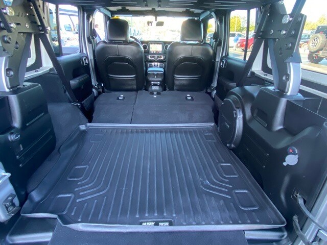 This Wrangler is well equipped with 8.4" Radio & Premium Audio Group (4G LTE Wi-Fi Hot Spot, 5-Year SiriusXM Traffic Service, 5-Year SiriusXM Travel Link Service, Alpine Premium Audio System, Emergency/Assistance Call, For Details, Visit DriveUconnect.com, HD Radio, Radio: Uconnect 4C Nav w/8.4" Display, and SiriusXM Travel Link), LED Lighting Group (Daytime Running Lamps LED Accents and Front LED Fog Lamps), Quick Order Package 26G, Safety Group (Blind Spot & Cross Path Detection and ParkSense Rear Park Assist System), Trailer Tow & HD Electrical Group (240 Amp Alternator, 7 & 4 Pin Wiring Harness, 700 Amp Maintenance Free Battery, and Class II Receiver Hitch), 3.45 Rear Axle Ratio, 4-Wheel Disc Brakes, 8 Speakers, ABS brakes, Air Conditioning, Alloy wheels, AM/FM radio: SiriusXM, Anti-Spin Differential Rear Axle, Apple CarPlay, Apple CarPlay/Android Auto, Automatic temperature control, Aux Battery, Body Color 3-Piece Hard Top, Brake assist, Cloth Low-Back Bucket Seats, Compass, Delay-off headlights, Driver door bin, Driver vanity mirror, Dual front impact airbags, Dual front side impact airbags, Electronic Stability Control, Front anti-roll bar, Front Bucket Seats, Front Center Armrest w/Storage, Front dual zone A/C, Front fog lights, Front reading lights, Fully automatic headlights, Garage door transmitter, Google Android Auto, GPS Antenna Input, Heated door mirrors, Heavy Duty Suspension w/Gas Shocks, Illuminated entry, Integrated roll-over protection, Integrated Voice Command w/Bluetooth, Leather steering wheel, Low tire pressure warning, MOPAR Hardtop Headliner, Non-Lock Fuel Cap w/o Discriminator, Occupant sensing airbag, Outside temperature display, Panic alarm, ParkView Rear Back-Up Camera, Passenger door bin, Passenger vanity mirror, Power door mirrors, Power steering, Power windows, Radio data system, Radio: Uconnect 4 w/7" Display, Rear anti-roll bar, Rear reading lights, Remote keyless entry, Remote Proximity Keyless Entry, Remote Start System, Security system, Speed control, Split folding rear seat, Steering wheel mounted audio controls, Stop-Start Dual Battery System, Tachometer, Telescoping steering wheel, Tilt steering wheel, Traction control, Trip computer, Variably intermittent wipers, Voltmeter, Wheels: 18" x 7.5" Polished w/Gray Spokes, and Wheels: 18" x 7.5" Tech Gray Polished Face (DISC).