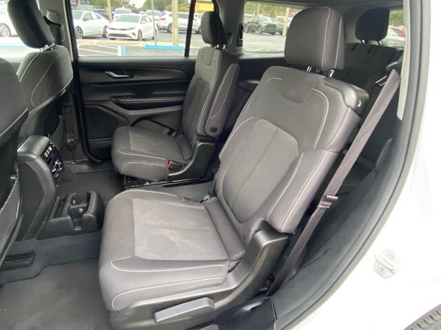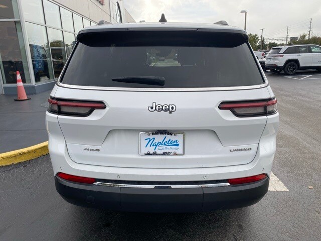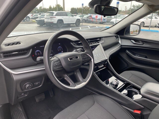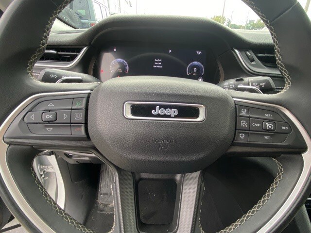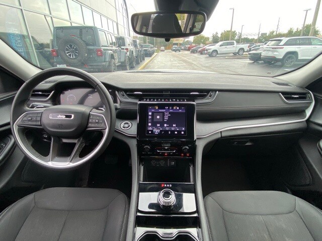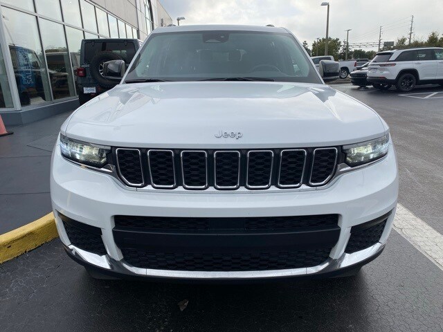 This Grand Cherokee L is well equipped with Quick Order Package 23A Laredo, 3.45 Rear Axle Ratio, 3rd row seats: split-bench, 4-Wheel Disc Brakes, 6 Speakers, ABS brakes, Air Conditioning, Alloy wheels, Anti-whiplash front head restraints, Automatic temperature control, Brake assist, Bumpers: body-color, Cloth Seats, Compass, Delay-off headlights, Driver door bin, Driver vanity mirror, Dual front impact airbags, Dual front side impact airbags, Electronic Stability Control, Emergency communication system, Four wheel independent suspension, Front anti-roll bar, Front Bucket Seats, Front Center Armrest w/Storage, Front dual zone A/C, Front License Plate Bracket, Front reading lights, Fully automatic headlights, Heated door mirrors, Illuminated entry, Knee airbag, Low tire pressure warning, Manual Fold Seatbacks, Molded In Color Black/Gloss Black Roof Rails, Normal Duty Suspension, Occupant sensing airbag, Outside temperature display, Overhead airbag, Overhead console, Panic alarm, ParkView Rear Back-Up Camera, Passenger door bin, Passenger vanity mirror, Power door mirrors, Power driver seat, Power steering, Power windows, Radio data system, Radio: Uconnect 5 w/8.4" Display, Rear air conditioning, Rear anti-roll bar, Rear reading lights, Rear window defroster, Rear window wiper, Reclining 3rd row seat, Remote keyless entry, Security system, Speed control, Speed-Sensitive Wipers, Split folding rear seat, Spoiler, Steering wheel mounted audio controls, Tachometer, Telescoping steering wheel, Tilt steering wheel, Traction control, Trip computer, Variably intermittent wipers, Voltmeter, and Wheels: 18" x 8.0" Fully Painted Aluminum.