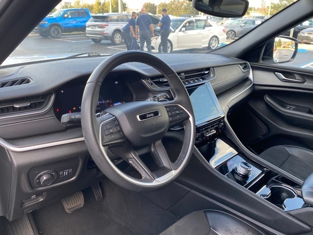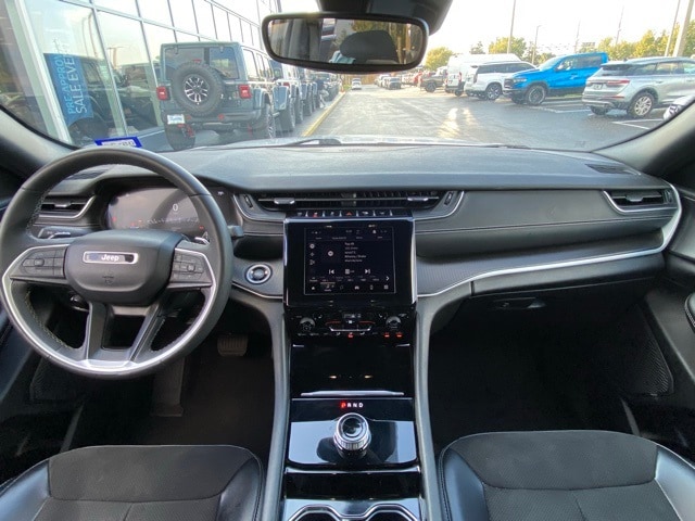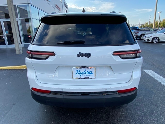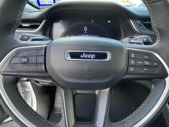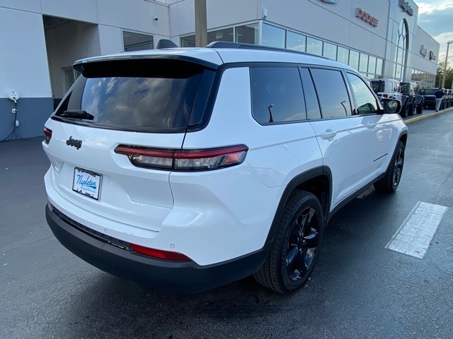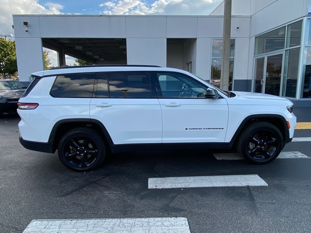 This Grand Cherokee L is well equipped with Altitude Appearance Package, Quick Order Package 23B Altitude (115V Auxiliary Power Outlet, 3rd Row Charge-Only USB Ports, Black Headliner, Capri Leatherette/Suede Seats, Delete Laredo Badge, Gloss Black Exterior Accents, Heated Front Seats, Heated Steering Wheel, Molded In Color Black/Gloss Black Roof Rails, Power Liftgate, Rain Sensitive Windshield Wipers, Remote Start System, Selectable Tire Fill Alert, Wheels: 18" x 8.0" Fully Painted Aluminum 1, and Wireless Charging Pad), 3.45 Rear Axle Ratio, 3rd row seats: split-bench, 4-Wheel Disc Brakes, 6 Speakers, ABS brakes, Air Conditioning, Alloy wheels, Anti-whiplash front head restraints, Automatic temperature control, Brake assist, Bumpers: body-color, Cloth Seats, Compass, Delay-off headlights, Driver door bin, Driver vanity mirror, Dual front impact airbags, Dual front side impact airbags, Electronic Stability Control, Emergency communication system, Four wheel independent suspension, Front anti-roll bar, Front Bucket Seats, Front Center Armrest w/Storage, Front dual zone A/C, Front License Plate Bracket, Front reading lights, Fully automatic headlights, Heated door mirrors, Illuminated entry, Knee airbag, Low tire pressure warning, Manual Fold Seatbacks, Normal Duty Suspension, Occupant sensing airbag, Outside temperature display, Overhead airbag, Overhead console, Panic alarm, ParkView Rear Back-Up Camera, Passenger door bin, Passenger vanity mirror, Power door mirrors, Power driver seat, Power steering, Power windows, Radio data system, Radio: Uconnect 5 w/8.4" Display, Rear air conditioning, Rear anti-roll bar, Rear reading lights, Rear window defroster, Rear window wiper, Reclining 3rd row seat, Remote keyless entry, Security system, Speed control, Speed-Sensitive Wipers, Split folding rear seat, Spoiler, Steering wheel mounted audio controls, Tachometer, Telescoping steering wheel, Tilt steering wheel, Traction control, Trip computer, Variably intermittent wipers, Voltmeter, Wheels: 18" x 8.0" Fully Painted Aluminum, and Wheels: 20" x 8.5" Gloss Black Painted Aluminum.