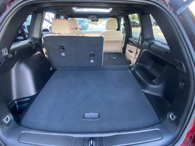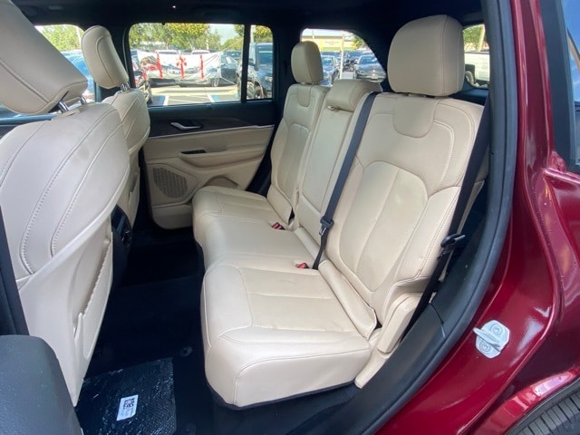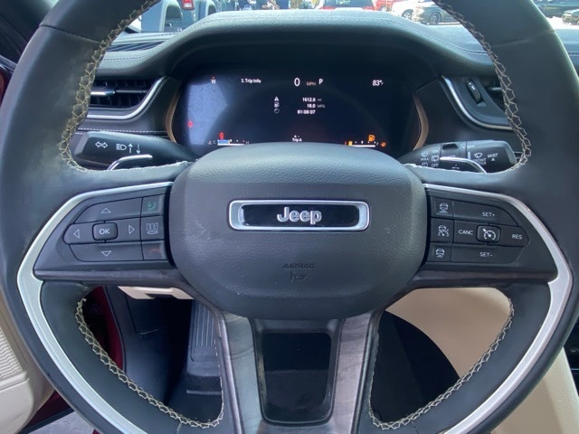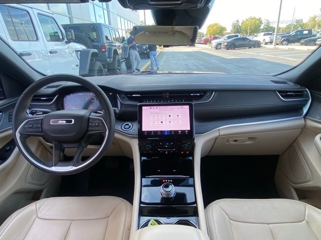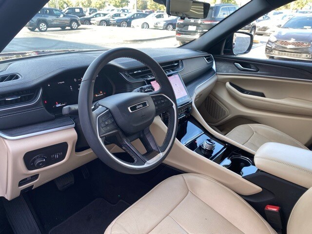 This Grand Cherokee is well equipped with Luxury Tech Group II (2nd-Row Manual Window Shades, Auto-Dimming Exterior Driver Mirror, Capri Leatherette w/Axis II Seats, Front/Rear Doors & Liftgate w/Passive Entry, Integrated Off-Road Camera, Intersection Collision Assist System, Memory Steering Column, ParkSense Front/Rear Park Assist w/Stop, Power Tilt/Telescope Steering Column, Rain Sensitive Windshield Wipers, Rear Back-Up Camera Washer, Rearview Autodim Digital Display Mirror, Surround View Camera System, Ventilated Front Seats, and Wireless Charging Pad), Quick Order Package 23E, 3.45 Rear Axle Ratio, 4-Wheel Disc Brakes, 6 Speakers, ABS brakes, Active Noise Control System, Air Conditioning, Alloy wheels, AM/FM radio: SiriusXM with 360L, Anti-whiplash front head restraints, Audio memory, Auto High-beam Headlights, Automatic temperature control, Brake assist, Bumpers: body-color, Capri Leatherette Seats, Compass, Delay-off headlights, Driver door bin, Driver vanity mirror, Dual front impact airbags, Dual front side impact airbags, Dual-Pane Panoramic Sunroof, Electronic Stability Control, Emergency communication system, Four wheel independent suspension, Front anti-roll bar, Front Bucket Seats, Front Center Armrest w/Storage, Front dual zone A/C, Front fog lights, Front reading lights, Fully automatic headlights, Garage door transmitter, Heated door mirrors, Heated front seats, Heated rear seats, Heated steering wheel, Illuminated entry, Knee airbag, Low tire pressure warning, Memory seat, Molded In Color Black/Gloss Black Roof Rails, Navigation System, Normal Duty Suspension, Occupant sensing airbag, Outside temperature display, Overhead airbag, Overhead console, Panic alarm, ParkView Rear Back-Up Camera, Passenger door bin, Passenger vanity mirror, Power door mirrors, Power driver seat, Power Liftgate, Power passenger seat, Power steering, Power windows, Radio data system, Radio: Uconnect 5 Nav w/10.1" Display, Rear anti-roll bar, Rear reading lights, Rear window defroster, Rear window wiper, Remote keyless entry, Security system, Speed control, Speed-Sensitive Wipers, Split folding rear seat, Spoiler, Steering wheel mounted audio controls, Tachometer, Telescoping steering wheel, Tilt steering wheel, Traction control, Trip computer, Turn signal indicator mirrors, Variably intermittent wipers, Voltmeter, Wheels: 18" x 8" Fully Painted Aluminum, and Wheels: 18" x 8" Polished/Painted Aluminum.