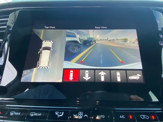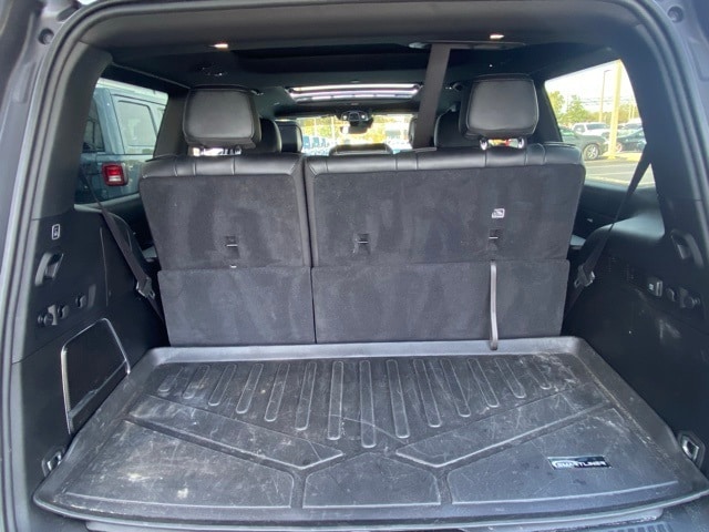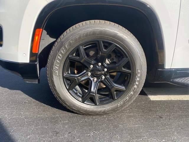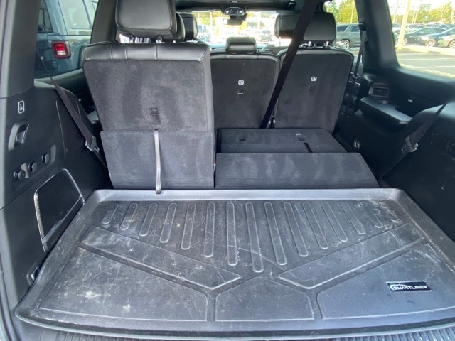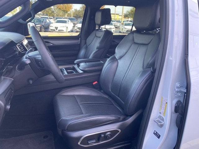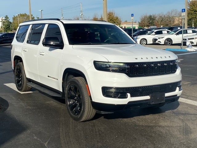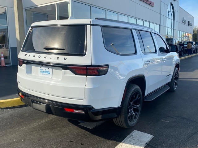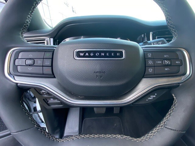 This Wagoneer is well equipped with Carbide Appearance Package, Convenience Group I (2nd Row Manual Window Shades, Auto High Beam Headlamp Control, Drowsy Driver Detection, Heads-Up Display, Heated Second Row Seats, Intersection Collision Assist System, P&P Park & Unpark Assist w/Stop System, Side Distance Warning, Surround View Camera System, and Traffic Sign Recognition), Quick Order Package 25F Carbide (3 Panel Sunroof, Adjustable Roof Rail Crossbars, Black Interior Accents, Cargo Cover, Piano Black Exterior Accents, Reversible Carpet/Vinyl Cargo Mat, and Wheels: 20" x 9" Gloss Black Painted Aluminum), 10 Speakers, 3.55 Rear Axle Ratio, 3rd row seats: bench, 4-Wheel Disc Brakes, ABS brakes, Adjustable pedals, Air Conditioning, Alloy wheels, AM/FM radio: SiriusXM with 360L, Anti-whiplash front head restraints, Audio memory, Auto-dimming door mirrors, Auto-dimming Rear-View mirror, Auto-leveling suspension, Automatic temperature control, Brake assist, Bumpers: body-color, Compass, Delay-off headlights, Driver door bin, Driver vanity mirror, Driver's Seat Mounted Armrest, Dual front impact airbags, Dual front side impact airbags, Electronic Stability Control, Emergency communication system: Automatic SOS Call, Exterior Parking Camera Rear, Four wheel independent suspension, Front anti-roll bar, Front Bucket Seats, Front Center Armrest w/Storage, Front dual zone A/C, Front fog lights, Front Passenger Interactive Display, Front reading lights, Fully automatic headlights, Garage door transmitter, Genuine wood console insert, Genuine wood dashboard insert, Genuine wood door panel insert, Heated door mirrors, Heated front seats, Heated steering wheel, Illuminated entry, Knee airbag, Leather Trimmed Bucket Seats, Low tire pressure warning, Memory seat, Navigation System, Normal Duty Suspension, Occupant sensing airbag, Outside temperature display, Overhead airbag, Overhead console, Panic alarm, Passenger door bin, Passenger seat mounted armrest, Passenger vanity mirror, Pedal memory, Power adjustable front head restraints, Power door mirrors, Power driver seat, Power Liftgate, Power passenger seat, Power steering, Power windows, Radio data system, Radio: Uconnect 5 Nav w/10.1" Display, Rain sensing wipers, Rear air conditioning, Rear anti-roll bar, Rear dual zone A/C, Rear reading lights, Rear seat center armrest, Rear window defroster, Rear window wiper, Reclining 3rd row seat, Remote keyless entry, Security system, Speed control, Speed-sensing steering, Speed-Sensitive Wipers, Split folding rear seat, Steering wheel memory, Steering wheel mounted audio controls, Tachometer, Telescoping steering wheel, Tilt steering wheel, Traction control, Trip computer, Turn signal indicator mirrors, Variably intermittent wipers, Ventilated front seats, Voltmeter, and Wheels: 20" x 9.0" Premium 2 Aluminum.
