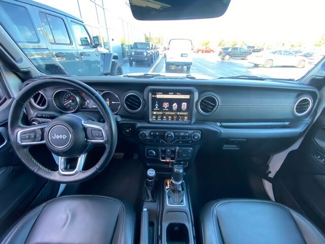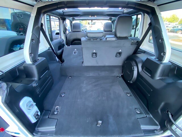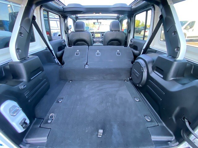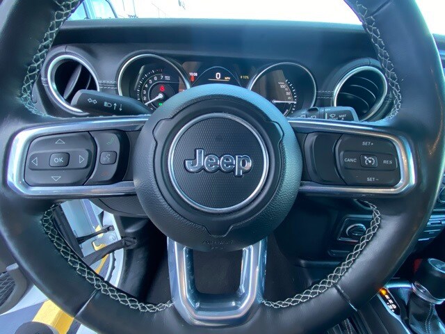 This Wrangler is well equipped with Cold Weather Group (Heated Front Seats and Heated Steering Wheel), Quick Order Package 29P Sahara, Trailer Tow & Aux Switch Group (700 Amp Maintenance Free Battery and Auxiliary Switches), 3.73 Rear Axle Ratio, 4-Wheel Disc Brakes, 9 Speakers, ABS brakes, Air Conditioning, Alloy wheels, AM/FM radio: SiriusXM, Apple CarPlay/Android Auto, Auto-dimming Rear-View mirror, Automatic temperature control, Brake assist, Compass, Corning Gorilla Glass, Delay-off headlights, Driver door bin, Driver vanity mirror, Dual front impact airbags, Dual front side impact airbags, Electronic Stability Control, Emergency communication system: SiriusXM Guardian, Front anti-roll bar, Front Bucket Seats, Front Center Armrest w/Storage, Front dual zone A/C, Front fog lights, Front reading lights, Fully automatic headlights, Garage door transmitter, Heated door mirrors, Illuminated entry, Integrated roll-over protection, Leather Shift Knob, Low tire pressure warning, MOPAR All-Weather Floor Mats, Navigation System, Occupant sensing airbag, Outside temperature display, Panic alarm, ParkView Rear Back-Up Camera, Passenger door bin, Passenger vanity mirror, Power door mirrors, Power steering, Power windows, Premium McKinley Trimmed Seats, Radio data system, Radio: Uconnect 4C Nav w/8.4" Display, Rear anti-roll bar, Rear reading lights, Rear seat center armrest, Remote keyless entry, Security system, Side Steps, Sky 1-Touch Power Top, Speed control, Split folding rear seat, Sport Suspension, Steering wheel mounted audio controls, Tachometer, Telescoping steering wheel, Tilt steering wheel, Traction control, Trip computer, Variably intermittent wipers, Voltmeter, and Wheels: 20" x 8" Fully Painted Aluminum.