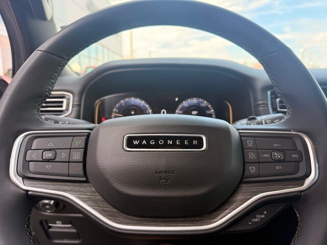 This Wagoneer is well equipped with Flexible Seating Group (40/20/40 2nd Row Bench Power Tip/Slide, 60/40 Power Recline 3rd Row Seat, 8-Passenger Seating, and Full Length Floor Console), Quick Order Package 25J, 10 Speakers, 3.55 Rear Axle Ratio, 3rd row seats: bench, 4-Wheel Disc Brakes, ABS brakes, Adjustable pedals, Air Conditioning, Alloy wheels, AM/FM radio: SiriusXM with 360L, Anti-whiplash front head restraints, Apple CarPlay/Android Auto, Audio memory, Auto-dimming door mirrors, Auto-dimming Rear-View mirror, Auto-leveling suspension, Automatic temperature control, Brake assist, Bumpers: body-color, Compass, Delay-off headlights, Driver door bin, Driver vanity mirror, Driver's Seat Mounted Armrest, Dual front impact airbags, Dual front side impact airbags, Electronic Stability Control, Emergency communication system: Wagoneer Connect, Exterior Parking Camera Rear, Four wheel independent suspension, Front anti-roll bar, Front Bucket Seats, Front Center Armrest w/Storage, Front dual zone A/C, Front fog lights, Front reading lights, Fully automatic headlights, Garage door transmitter, Genuine wood console insert, Genuine wood dashboard insert, Genuine wood door panel insert, Heated door mirrors, Heated front seats, Heated rear seats, Heated steering wheel, Illuminated entry, Knee airbag, Leather Trimmed Bucket Seats, Low tire pressure warning, Memory seat, Navigation System, Normal Duty Suspension, Occupant sensing airbag, Outside temperature display, Overhead airbag, Overhead console, Panic alarm, Passenger door bin, Passenger seat mounted armrest, Passenger vanity mirror, Pedal memory, Power adjustable front head restraints, Power door mirrors, Power driver seat, Power Liftgate, Power passenger seat, Power steering, Power windows, Radio data system, Radio: Uconnect 5 Nav w/10.1" Display, Rain sensing wipers, Rear air conditioning, Rear anti-roll bar, Rear dual zone A/C, Rear reading lights, Rear seat center armrest, Rear window defroster, Rear window wiper, Reclining 3rd row seat, Remote keyless entry, Security system, Speed control, Speed-sensing steering, Speed-Sensitive Wipers, Split folding rear seat, Steering wheel memory, Steering wheel mounted audio controls, Tachometer, Telescoping steering wheel, Tilt steering wheel, Traction control, Trip computer, Turn signal indicator mirrors, Variably intermittent wipers, Ventilated front seats, Voltmeter, and Wheels: 20" x 9.0" Premium 2 Aluminum.