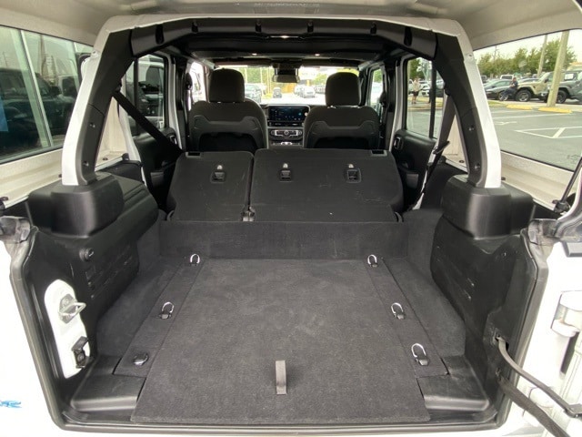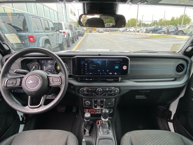 This Wrangler is well equipped with 12.3" Touchscreen Display, 4-Wheel Disc Brakes, 4G LTE Wi-Fi Hot Spot, 8 Speakers, ABS brakes, Air Conditioning, Alloy wheels, AM/FM radio: SiriusXM, Apple CarPlay, Apple CarPlay/Android Auto, Automatic temperature control, Brake assist, Compass, Connectivity - US/Canada, Delay-off headlights, Disassociated Touchscreen Display, Driver door bin, Driver vanity mirror, Dual front impact airbags, Dual front side impact airbags, Electronic Stability Control, Emergency communication system: Jeep Connect, Front anti-roll bar, Front Bucket Seats, Front Center Armrest w/Storage, Front dual zone A/C, Front fog lights, Front reading lights, Fully automatic headlights, Google Android Auto, Heated door mirrors, Illuminated entry, Integrated Center Stack Radio, Integrated roll-over protection, Integrated Voice Command w/Bluetooth, Low tire pressure warning, Occupant sensing airbag, Outside temperature display, Overhead airbag, Panic alarm, ParkView Rear Back-Up Camera, Passenger door bin, Passenger vanity mirror, Performance Suspension, Power door mirrors, Power steering, Power windows, Radio data system, Radio: Uconnect 5 w/12.3" Display, Rear anti-roll bar, Rear reading lights, Remote keyless entry, Security system, Speed control, Split folding rear seat, Steering wheel mounted audio controls, Sustainable Premium Cloth Seats, Tachometer, Telescoping steering wheel, Tilt steering wheel, Traction control, Trip computer, Variably intermittent wipers, Voltmeter, and Wheels: 17" x 7.5" Machined w/Black Pockets.