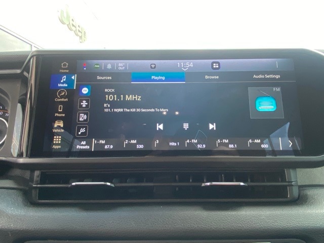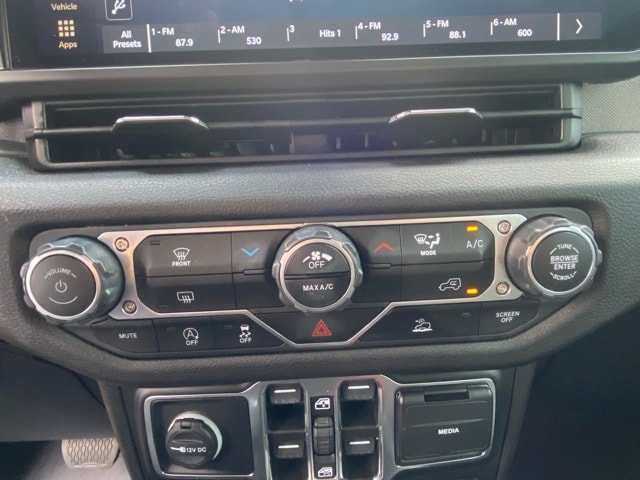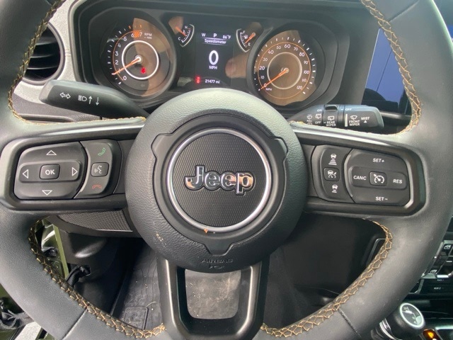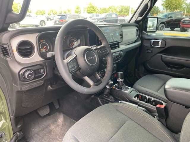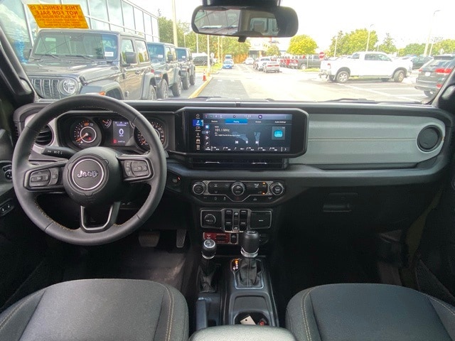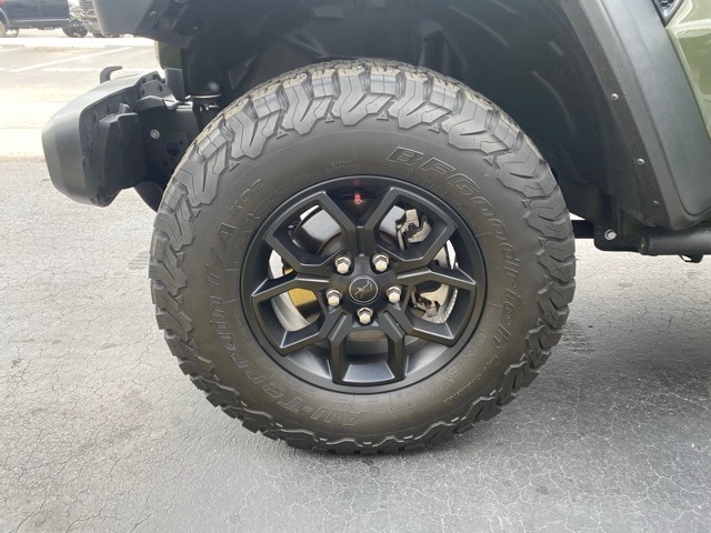 This Wrangler is well equipped with Quick Order Package 22W Willys (4.10 Rear Axle Ratio, Wheels: 17" x 7.5" Painted Black, and Willy's Suspension), 110 MPH Vehicle Max Speed Calibration, 4-Wheel Disc Brakes, 8 Speakers, ABS brakes, Air Conditioning, AM/FM radio, Apple CarPlay/Android Auto, Aux Battery, Black 3-Piece Hard Top, Brake assist, Cloth Low-Back Bucket Seats, Compass, Delay-off headlights, Driver door bin, Driver vanity mirror, Dual front impact airbags, Dual front side impact airbags, Electronic Stability Control, Front anti-roll bar, Front Bucket Seats, Front Center Armrest w/Storage, Front fog lights, Front reading lights, Integrated roll-over protection, Low tire pressure warning, Non-Lock Fuel Cap w/o Discriminator, Normal Duty Suspension, Occupant sensing airbag, Outside temperature display, Overhead airbag, ParkView Rear Back-Up Camera, Passenger door bin, Passenger vanity mirror, Power steering, Radio data system, Radio: Uconnect 5 w/12.3" Display, Rear anti-roll bar, Rear reading lights, Speed control, Split folding rear seat, Steering wheel mounted audio controls, Stop-Start Dual Battery System, Tachometer, Telescoping steering wheel, Tilt steering wheel, Traction control, Trip computer, Variably intermittent wipers, and Wheels: 17" x 7.5" Black Steel Styled.