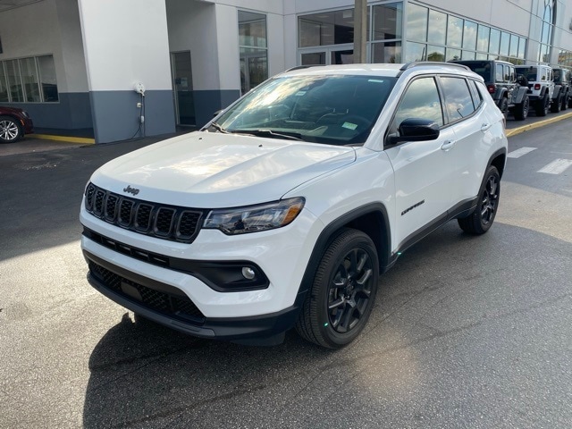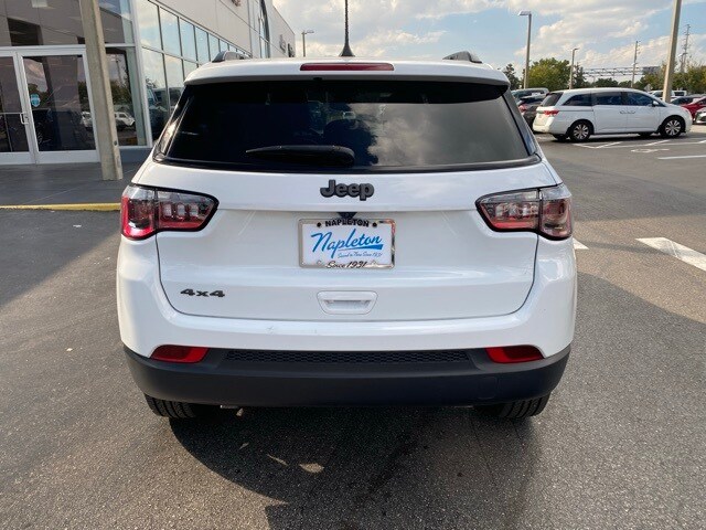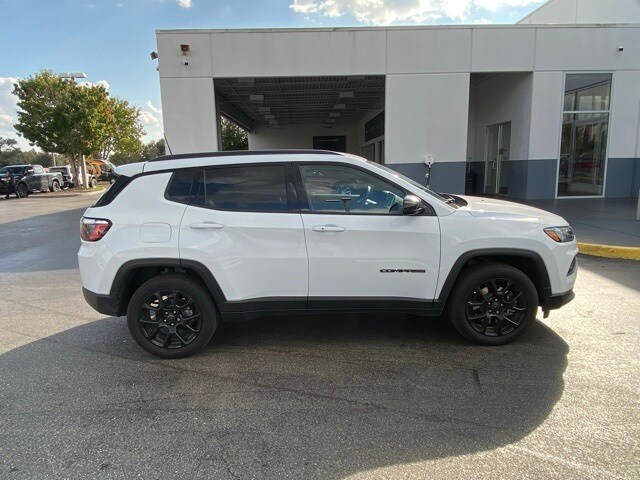 This Compass is well equipped with Altitude Special Edition (Black Day Light Opening Moldings, Gloss Black Surround/Neutral Gray Rings, Neutral Gray Exterior Badging, Piano Black Interior Accents, Sliding Sun Visors w/Illuminated Mirrors, and Wheels: 18" x 7" Gloss Black Painted Aluminum), Quick Order Package 29J, 3.73 Final Drive Ratio, 4-Wheel Disc Brakes, 6 Speakers, ABS brakes, Air Conditioning, Alloy wheels, AM/FM radio: SiriusXM, Apple CarPlay/Android Auto, Auto High-beam Headlights, Brake assist, Bumpers: body-color, Compass, Delay-off headlights, Driver door bin, Driver vanity mirror, Dual front impact airbags, Dual front side impact airbags, Electronic Stability Control, Emergency communication system: Jeep Connect, Four wheel independent suspension, Front anti-roll bar, Front Bucket Seats, Front Center Armrest w/Storage, Front fog lights, Front reading lights, Fully automatic headlights, Heated door mirrors, Heated front seats, Heated steering wheel, Illuminated entry, Knee airbag, Leather Shift Knob, Leather steering wheel, Low tire pressure warning, Occupant sensing airbag, Outside temperature display, Overhead airbag, Overhead console, Panic alarm, ParkView Rear Back-Up Camera, Passenger door bin, Passenger vanity mirror, Power door mirrors, Power steering, Power windows, Premium audio system: UConnect 5, Premium Cloth/Vinyl Bucket Seats, Radio: Uconnect 5 w/8.4" Display, Rear anti-roll bar, Rear seat center armrest, Rear window defroster, Rear window wiper, Remote keyless entry, Security system, Speed control, Split folding rear seat, Spoiler, Steering wheel mounted audio controls, Tachometer, Telescoping steering wheel, Tilt steering wheel, Traction control, Trip computer, Variably intermittent wipers, and Wheels: 17" x 7" Aluminum (DISC).