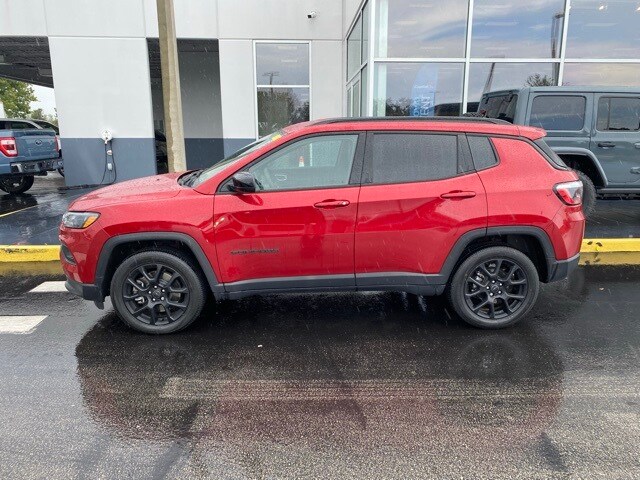 This Compass is well equipped with Altitude Special Edition (Black Day Light Opening Moldings, Gloss Black Surround/Neutral Gray Rings, Neutral Gray Exterior Badging, Piano Black Interior Accents, Sliding Sun Visors w/Illuminated Mirrors, and Wheels: 18" x 7" Gloss Black Painted Aluminum), Quick Order Package 29J, 3.73 Final Drive Ratio, 4-Wheel Disc Brakes, 6 Speakers, ABS brakes, Air Conditioning, Alloy wheels, AM/FM radio: SiriusXM, Apple CarPlay/Android Auto, Auto High-beam Headlights, Brake assist, Bumpers: body-color, Compass, Delay-off headlights, Driver door bin, Driver vanity mirror, Dual front impact airbags, Dual front side impact airbags, Electronic Stability Control, Emergency communication system: Jeep Connect, Four wheel independent suspension, Front anti-roll bar, Front Bucket Seats, Front Center Armrest w/Storage, Front fog lights, Front reading lights, Fully automatic headlights, Heated door mirrors, Heated front seats, Heated steering wheel, Illuminated entry, Knee airbag, Leather Shift Knob, Leather steering wheel, Low tire pressure warning, Occupant sensing airbag, Outside temperature display, Overhead airbag, Overhead console, Panic alarm, ParkView Rear Back-Up Camera, Passenger door bin, Passenger vanity mirror, Power door mirrors, Power steering, Power windows, Premium audio system: UConnect 5, Premium Cloth/Vinyl Bucket Seats, Radio: Uconnect 5 w/8.4" Display, Rear anti-roll bar, Rear seat center armrest, Rear window defroster, Rear window wiper, Remote keyless entry, Security system, Speed control, Split folding rear seat, Spoiler, Steering wheel mounted audio controls, Tachometer, Telescoping steering wheel, Tilt steering wheel, Traction control, Trip computer, Variably intermittent wipers, and Wheels: 17" x 7" Aluminum (DISC).