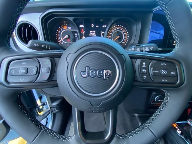 This Wrangler is well equipped with Convenience Group (2-Door Passive Entry, Front Door Locks, Air Conditioning w/Auto Temperature Control, Air Filtering, Cluster 7.0" TFT Color Display, Emergency/Assistance Call, Heated Front Seats, Heated Steering Wheel, Remote Start System, and Universal Garage Door Opener), Quick Order Package 22S Sport S (Advanced Brake Assist, Automatic Headlamps, Corning Gorilla Glass, Deep Tint Sunscreen Windows, Enhanced Adaptive Cruise Control, Full Speed Forward Collision Warning Plus, Power Heated Mirrors, Premium Wrapped Steering Wheel, Security Alarm, Sun Visors w/Illuminated Vanity Mirrors, and Wheels: 17" x 7.5" Gray), Safety Group (Auto High Beam Headlamp Control, Blind Spot & Cross Path Detection, Injection Molded Black Rear Bumper, LED Taillamps, and ParkSense Rear Park Assist System), 110 MPH Vehicle Max Speed Calibration, 3.45 Overall Top Gear Ratio, 4-Wheel Disc Brakes, 8 Speakers, ABS brakes, Air Conditioning, AM/FM radio: SiriusXM, Apple CarPlay/Android Auto, Aux Battery, Black 3-Piece Hard Top, Brake assist, Cloth Low-Back Bucket Seats, Compass, Delay-off headlights, Driver door bin, Driver vanity mirror, Dual front impact airbags, Dual front side impact airbags, Electronic Stability Control, Freedom Panel Storage Bag, Front anti-roll bar, Front Bucket Seats, Front Center Armrest w/Storage, Front fog lights, Front reading lights, Illuminated entry, Integrated roll-over protection, Low tire pressure warning, Non-Lock Fuel Cap w/o Discriminator, Normal Duty Suspension, Occupant sensing airbag, Outside temperature display, Overhead airbag, Panic alarm, ParkView Rear Back-Up Camera, Passenger door bin, Passenger vanity mirror, Power steering, Power windows, Radio data system, Radio: Uconnect 5 w/12.3" Display, Rear anti-roll bar, Rear reading lights, Rear Window Defroster, Rear Window Wiper/Washer, Remote keyless entry, Speed control, Split folding rear seat, Steering wheel mounted audio controls, Stop-Start Dual Battery System, Tachometer, Telescoping steering wheel, Tilt steering wheel, Traction control, Trip computer, Variably intermittent wipers, and Wheels: 17" x 7.5" Black Steel Styled.