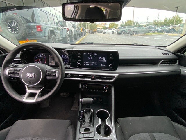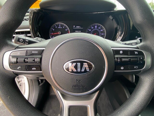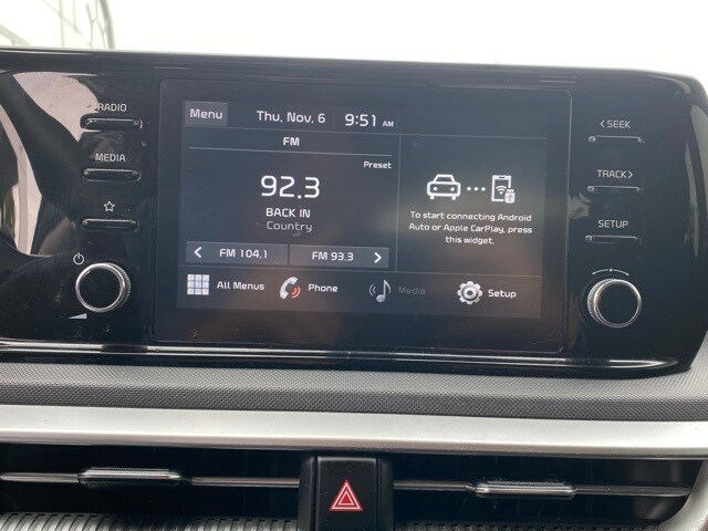 This K5 is well equipped with 4-Wheel Disc Brakes, 6 Speakers, ABS brakes, Air Conditioning, Alloy wheels, AM/FM radio, Apple CarPlay & Android Auto, Auto High-beam Headlights, Automatic temperature control, Brake assist, Bumpers: body-color, Carpeted Floor Mats, Cloth Seat Trim, Delay-off headlights, Driver door bin, Driver vanity mirror, Dual front impact airbags, Dual front side impact airbags, Electronic Stability Control, Four wheel independent suspension, Front anti-roll bar, Front Bucket Seats, Front Center Armrest, Front dual zone A/C, Front reading lights, Fully automatic headlights, Heated door mirrors, Illuminated entry, Knee airbag, Low tire pressure warning, Occupant sensing airbag, Outside temperature display, Overhead airbag, Overhead console, Panic alarm, Passenger door bin, Passenger vanity mirror, Power door mirrors, Power steering, Power windows, Radio data system, Radio: AM/FM/MP3 Audio System, Rear anti-roll bar, Rear seat center armrest, Rear side impact airbag, Rear window defroster, Remote keyless entry, Security system, Speed control, Speed-sensing steering, Split folding rear seat, Steering wheel mounted audio controls, Tachometer, Telescoping steering wheel, Tilt steering wheel, Traction control, Trip computer, Variably intermittent wipers, and Wheels: 6.5J x 16" Machined Finish Alloy.