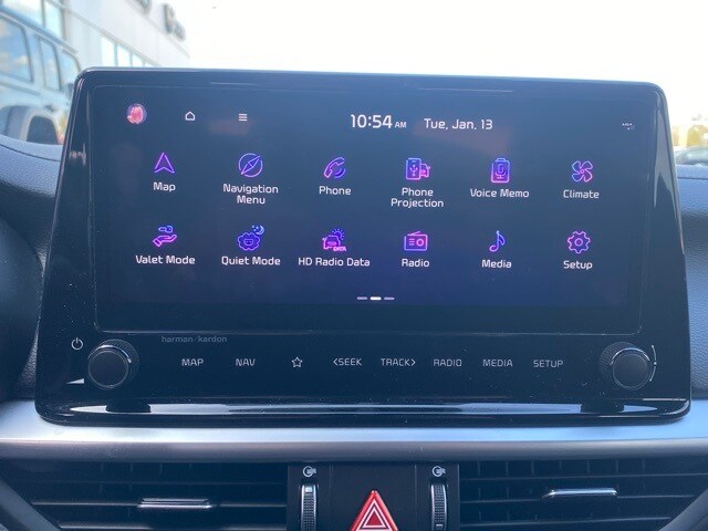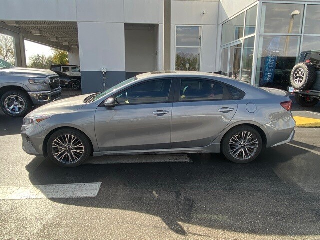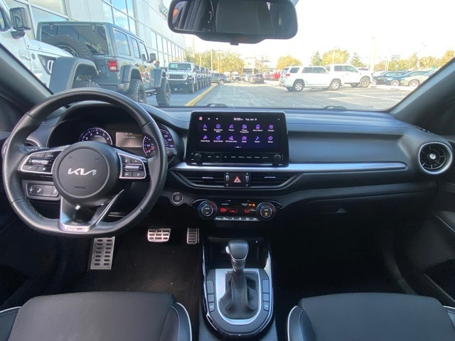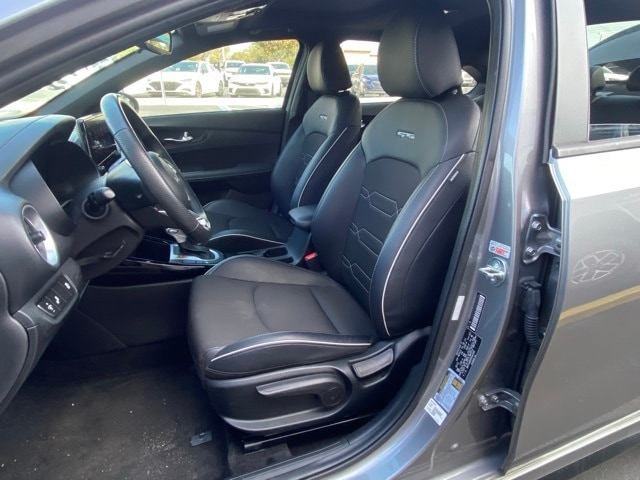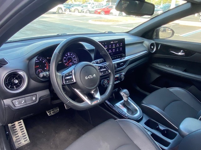 This Forte is well equipped with GT-Line Premium Package (Electronic Parking Brake (EPB), Forward Collision Avoidance-Assist - Cyclist, LED Interior Lighting, Navigation-Based Smart Cruise Control (NSCC), Power Sunroof, Radio: harman kardon Premium Audio, Smart Cruise Control w/Stop & Go, and Wireless Charging), 17" x 7.0J Alloy Wheels, 4-Wheel Disc Brakes, 6 Speakers, ABS brakes, Air Conditioning, Alloy wheels, AM/FM radio: SiriusXM, Apple CarPlay & Android Auto, Auto High-beam Headlights, Automatic temperature control, Brake assist, Bumpers: body-color, Carpet Floor Mats, Cloth & SynTex Seat Trim, Delay-off headlights, Driver door bin, Driver vanity mirror, Dual front impact airbags, Dual front side impact airbags, Electronic Stability Control, Emergency communication system, Exterior Parking Camera Rear, Front anti-roll bar, Front Bucket Seats, Front Center Armrest, Front dual zone A/C, Front fog lights, Front reading lights, Front wheel independent suspension, Fully automatic headlights, Heated door mirrors, Illuminated entry, Leather Shift Knob, Leather steering wheel, Low tire pressure warning, Navigation System, Occupant sensing airbag, Outside temperature display, Overhead airbag, Overhead console, Panic alarm, Passenger door bin, Passenger vanity mirror, Power door mirrors, Power steering, Power windows, Radio data system, Radio: 10.25" Display Audio, Rear seat center armrest, Rear window defroster, Remote keyless entry, Security system, Speed control, Split folding rear seat, Spoiler, Sport steering wheel, Steering wheel mounted audio controls, Tachometer, Telescoping steering wheel, Tilt steering wheel, Traction control, Trip computer, Turn signal indicator mirrors, and Variably intermittent wipers.