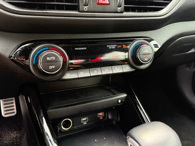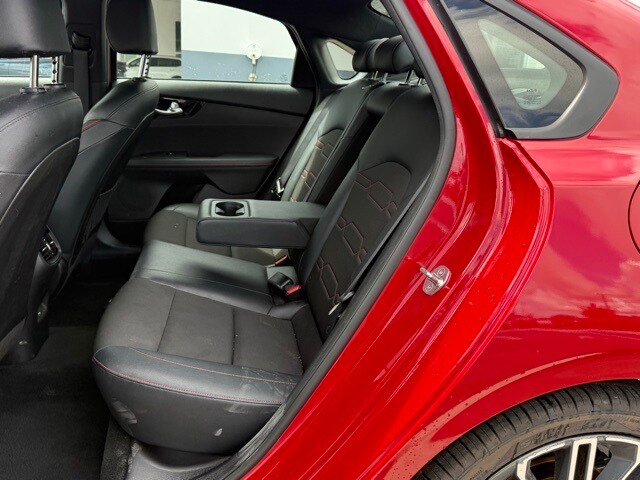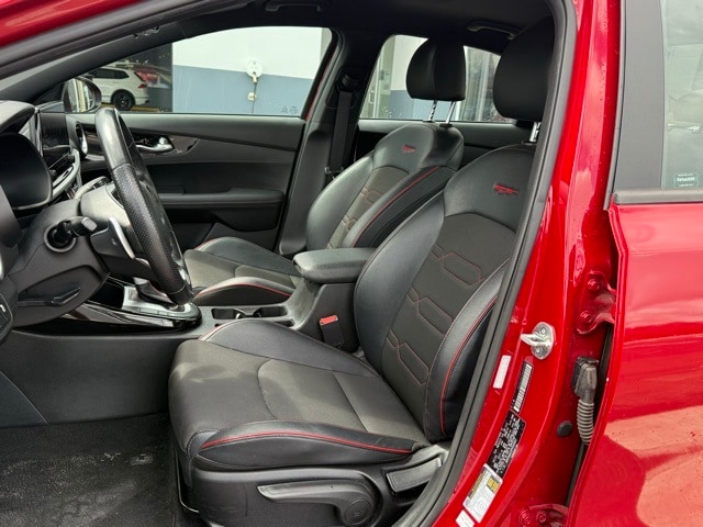 This Forte is well equipped with 18" x 7.5J Alloy Wheels, 4-Wheel Disc Brakes, 6 Speakers, ABS brakes, Air Conditioning, Alloy wheels, AM/FM radio: SiriusXM, Apple CarPlay & Android Auto, Auto High-beam Headlights, Automatic temperature control, Brake assist, Bumpers: body-color, Cloth & SynTex Seat Trim, Delay-off headlights, Driver door bin, Driver vanity mirror, Dual front impact airbags, Dual front side impact airbags, Electronic Stability Control, Emergency communication system, Exterior Parking Camera Rear, Four wheel independent suspension, Front anti-roll bar, Front Bucket Seats, Front Center Armrest, Front dual zone A/C, Front fog lights, Front reading lights, Fully automatic headlights, Heated door mirrors, Illuminated entry, Leather Shift Knob, Leather steering wheel, Low tire pressure warning, Navigation System, Occupant sensing airbag, Outside temperature display, Overhead airbag, Overhead console, Panic alarm, Passenger door bin, Passenger vanity mirror, Power door mirrors, Power steering, Power windows, Radio data system, Radio: 10.25" Display Audio, Radio: harman kardon Premium Audio, Rear anti-roll bar, Rear seat center armrest, Rear window defroster, Remote keyless entry, Security system, Speed control, Split folding rear seat, Spoiler, Sport steering wheel, Steering wheel mounted audio controls, SynTex Seat Trim, Tachometer, Telescoping steering wheel, Tilt steering wheel, Traction control, Trip computer, Turn signal indicator mirrors, and Variably intermittent wipers.