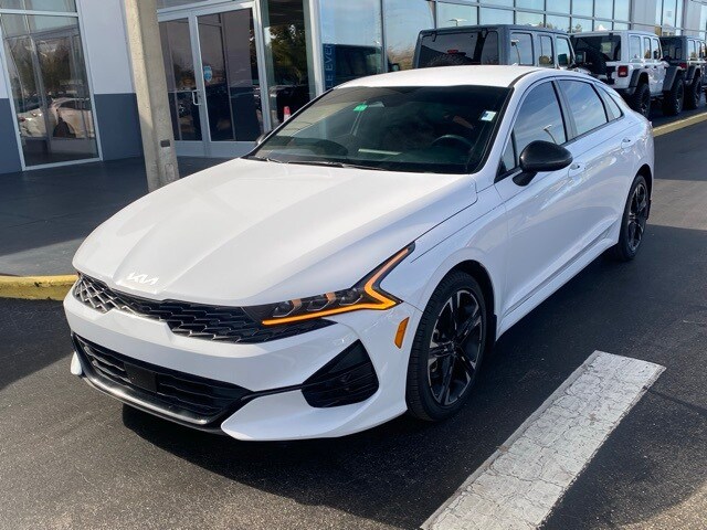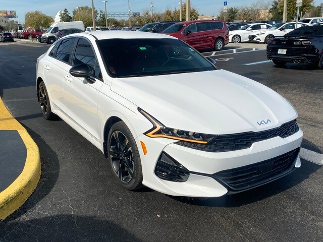 Recent Arrival! CARFAX One-Owner. Priced below KBB Fair Purchase Price! Glacial White Pearl 2023 Kia K5 4D Sedan GT-Line 1.6L I4 DGI Turbocharged DOHC 16V LEV3-ULEV70 180hp FWD