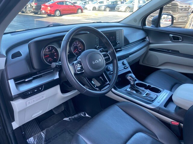 This Carnival is well equipped with 3.51 Axle Ratio, 3rd row seats: split-bench, 4-Wheel Disc Brakes, 6 Speakers, ABS brakes, Air Conditioning, Alloy wheels, AM/FM radio, Apple CarPlay & Android Auto, Auto High-beam Headlights, Brake assist, Bumpers: body-color, Delay-off headlights, Driver door bin, Driver vanity mirror, Dual front impact airbags, Dual front side impact airbags, Electronic Stability Control, Four wheel independent suspension, Front anti-roll bar, Front Bucket Seats, Front Center Armrest, Front reading lights, Fully automatic headlights, Heated door mirrors, Illuminated entry, Knee airbag, Leather Shift Knob, Low tire pressure warning, Occupant sensing airbag, Outside temperature display, Overhead airbag, Overhead console, Panic alarm, Passenger door bin, Passenger vanity mirror, Power door mirrors, Power steering, Power windows, Radio: AM/FM Audio System, Rear air conditioning, Rear anti-roll bar, Rear reading lights, Rear window defroster, Rear window wiper, Reclining 3rd row seat, Remote keyless entry, Security system, Speed control, Speed-sensing steering, Split folding rear seat, Spoiler, Steering wheel mounted audio controls, Tachometer, Telescoping steering wheel, Tilt steering wheel, Traction control, Trip computer, Turn signal indicator mirrors, Variably intermittent wipers, and Wheels: 6.5J x 17" Clear Silver Painted Alloy.