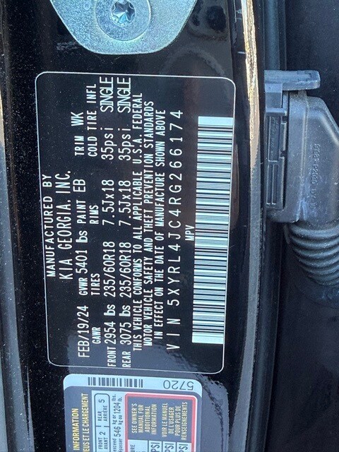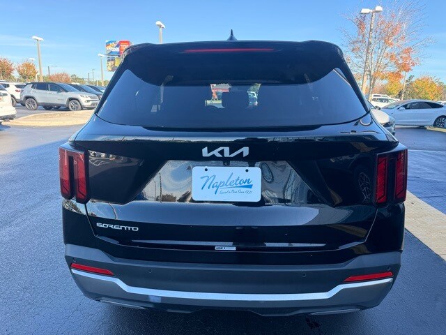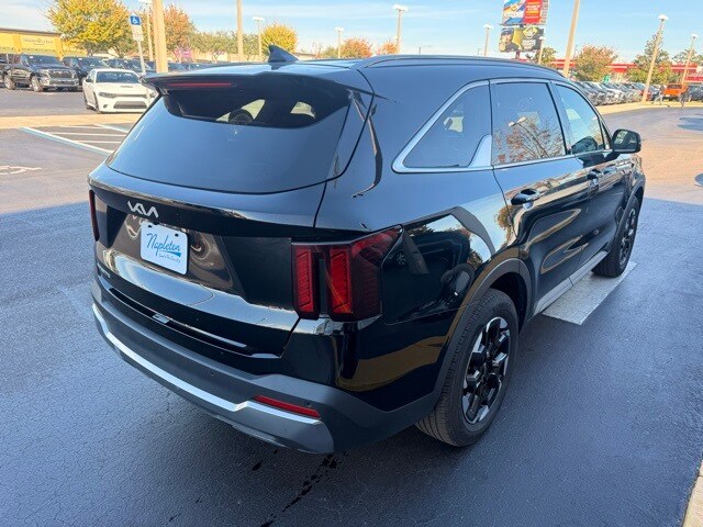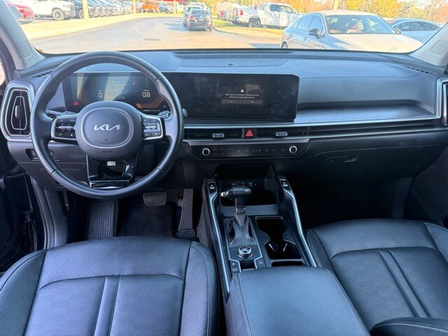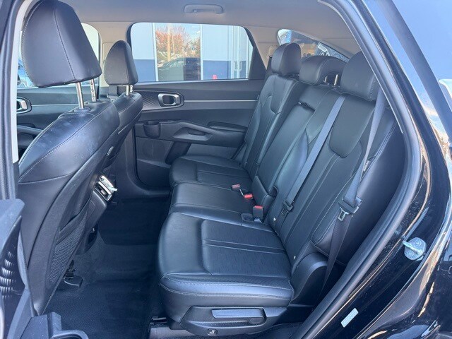 This Sorento is well equipped with 3.798 Axle Ratio, 3rd row seats: split-bench, 4-Wheel Disc Brakes, 6 Speakers, ABS brakes, Air Conditioning, Alloy wheels, AM/FM radio: SiriusXM, Apple CarPlay & Android Auto, Auto High-beam Headlights, Automatic temperature control, Brake assist, Bumpers: body-color, Carpeted Floor Mats, Delay-off headlights, Driver door bin, Driver vanity mirror, Dual front impact airbags, Dual front side impact airbags, Electronic Stability Control, Emergency communication system: 911 Connect, Exterior Parking Camera Rear, Four wheel independent suspension, Front anti-roll bar, Front Bucket Seats, Front Center Armrest, Front dual zone A/C, Front fog lights, Front reading lights, Fully automatic headlights, Heated door mirrors, Heated Front Bucket Seats, Heated front seats, Illuminated entry, Knee airbag, Leather Shift Knob, Leather steering wheel, Low tire pressure warning, Navigation System, Occupant sensing airbag, Outside temperature display, Overhead airbag, Overhead console, Panic alarm, Passenger door bin, Passenger vanity mirror, Power door mirrors, Power driver seat, Power steering, Power windows, Radio data system, Radio: AM/FM Audio System, Rear anti-roll bar, Rear reading lights, Rear seat center armrest, Rear side impact airbag, Rear window defroster, Rear window wiper, Remote keyless entry, Security system, Smart Key w/ Push Button and Remote Start, Speed control, Speed-sensing steering, Split folding rear seat, Spoiler, Steering wheel mounted audio controls, SynTex Artificial Leather Seat Trim, Tachometer, Telescoping steering wheel, Tilt steering wheel, Traction control, Trip computer, Turn signal indicator mirrors, Variably intermittent wipers, and Wheels: 7.5J x 18" Alloy w/Machine Finish.