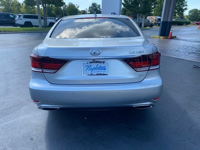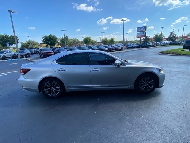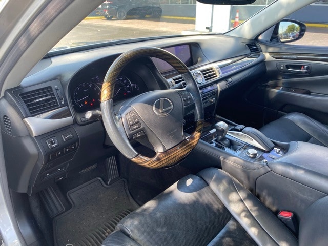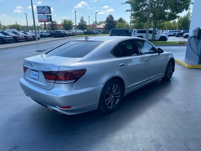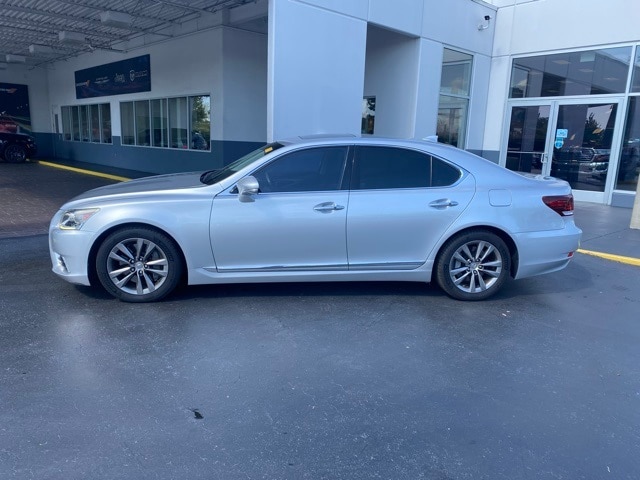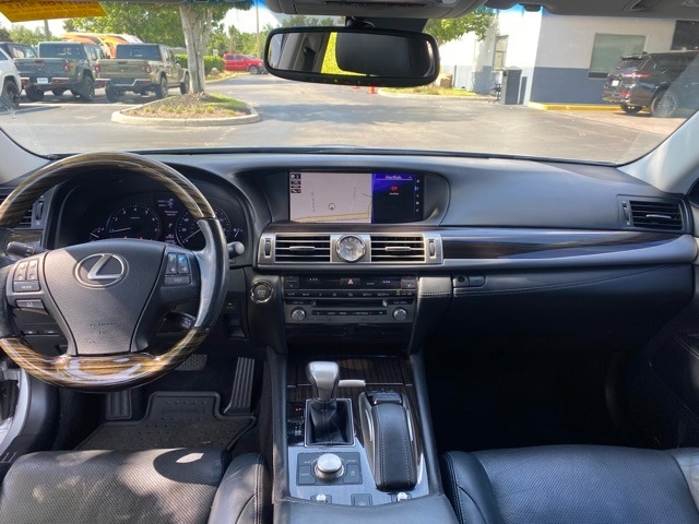This LS is well equipped with 10 Speakers, 4-Wheel Disc Brakes, ABS brakes, Air Conditioning, Alloy wheels, AM/FM radio: SiriusXM, Anti-whiplash front head restraints, Auto tilt-away steering wheel, Auto-dimming door mirrors, Auto-dimming Rear-View mirror, Automatic temperature control, Bodyside moldings, Brake assist, Bumpers: body-color, CD player, Compass, Delay-off headlights, Door auto-latch, Driver door bin, Driver vanity mirror, Dual front impact airbags, Dual front side impact airbags, DVD-Audio, Electronic Stability Control, Emergency communication system, Exterior Parking Camera Rear, Four wheel independent suspension, Front anti-roll bar, Front Bucket Seats, Front Center Armrest, Front dual zone A/C, Front fog lights, Front reading lights, Fully automatic headlights, Garage door transmitter: HomeLink, Genuine wood console insert, Genuine wood dashboard insert, Genuine wood door panel insert, Head restraints memory, Headlight cleaning, Heated door mirrors, Heated front seats, Heated steering wheel, High intensity discharge headlights: Bi-Xenon, Illuminated entry, Knee airbag, Leather Seat Trim, Leather Shift Knob, Leather steering wheel, Low tire pressure warning, Memory seat, MP3 decoder, Navigation System, Occupant sensing airbag, Outside temperature display, Overhead airbag, Overhead console, Panic alarm, Passenger door bin, Passenger vanity mirror, Power adjustable front head restraints, Power door mirrors, Power driver seat, Power moonroof, Power passenger seat, Power steering, Power windows, Radio data system, Radio: AM/FM/HD Stereo w/CD Player, Rain sensing wipers, Rear anti-roll bar, Rear reading lights, Rear seat center armrest, Rear window defroster, Remote keyless entry, Seatbelt memory, Security system, Speed control, Speed-Sensitive Wipers, Steering wheel memory, Steering wheel mounted audio controls, Tachometer, Telescoping steering wheel, Tilt steering wheel, Traction control, Trip computer, Turn signal indicator mirrors, Variably intermittent wipers, and Wheels: 18" x 7.5J Split 5-Spoke Alloy.