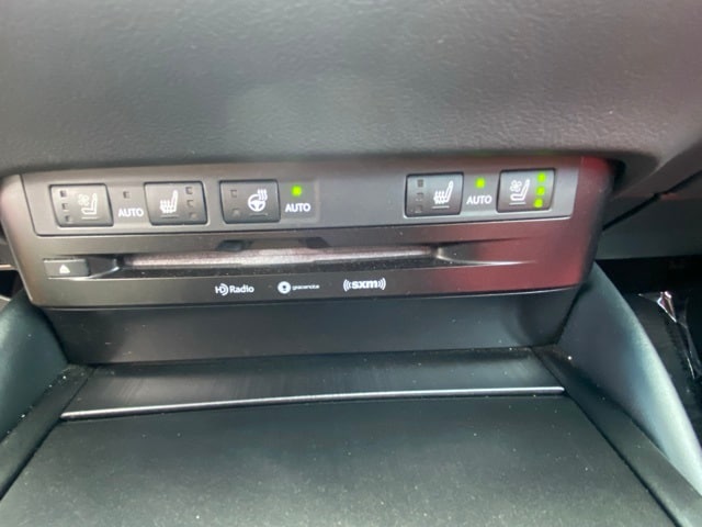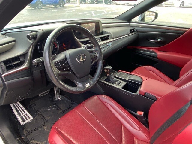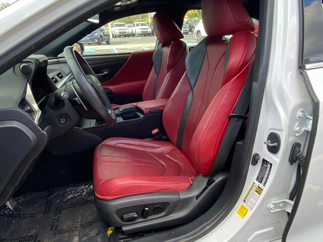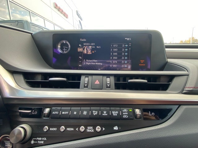 This ES is well equipped with 10 Speakers, 10-Way Power Adjustable F SPORT Front Seats, 4-Wheel Disc Brakes, ABS brakes, Air Conditioning, Alloy wheels, AM/FM radio: SiriusXM, Apple CarPlay/Android Auto, Auto High-beam Headlights, Auto tilt-away steering wheel, Auto-dimming door mirrors, Auto-dimming Rear-View mirror, Automatic temperature control, Brake assist, Bumpers: body-color, CD player, Compass, Delay-off headlights, Driver door bin, Driver vanity mirror, Dual front impact airbags, Dual front side impact airbags, Electronic Stability Control, Emergency communication system, Exterior Parking Camera Rear, F SPORT NuLuxe Seat Trim, Four wheel independent suspension, Front anti-roll bar, Front Bucket Seats, Front Center Armrest, Front dual zone A/C, Front reading lights, Fully automatic headlights, Garage door transmitter: HomeLink, Heated & Ventilated Seats, Heated door mirrors, Heated front seats, Illuminated entry, Knee airbag, Leather Shift Knob, Leather steering wheel, Low tire pressure warning, Memory seat, Occupant sensing airbag, Outside temperature display, Overhead airbag, Overhead console, Panic alarm, Passenger door bin, Passenger vanity mirror, Power door mirrors, Power driver seat, Power moonroof, Power passenger seat, Power steering, Power Tilt/Telescoping Steering Wheel w/Memory, Power windows, Radio data system, Radio: Multimedia System w/8" Color Display, Rain Sensing Wipers, Rain sensing wipers, Rear anti-roll bar, Rear reading lights, Rear seat center armrest, Rear side impact airbag, Rear window defroster, Remote keyless entry, Security system, Speed control, Speed-sensing steering, Spoiler, Sport steering wheel, Steering wheel memory, Steering wheel mounted audio controls, Tachometer, Telescoping steering wheel, Tilt steering wheel, Traction control, Trip computer, Turn signal indicator mirrors, Variably intermittent wipers, Ventilated front seats, and Wheels: 19" x 8J Split-5-Spoke Aluminum Alloy.