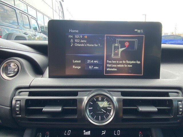 This IS is well equipped with 10 Speakers, 4-Wheel Disc Brakes, ABS brakes, Air Conditioning, Alloy wheels, AM/FM radio: SiriusXM, Apple CarPlay/Android Auto, Auto High-beam Headlights, Auto-dimming door mirrors, Automatic temperature control, Brake assist, Bumpers: body-color, CD player, Compass, Delay-off headlights, Driver door bin, Driver vanity mirror, Dual front impact airbags, Dual front side impact airbags, Electronic Stability Control, Emergency communication system: Safety Connect (3-year trial), Exterior Parking Camera Rear, Four wheel independent suspension, Front anti-roll bar, Front Bucket Seats, Front Center Armrest, Front dual zone A/C, Front fog lights, Front reading lights, Fully automatic headlights, Heated door mirrors, Illuminated entry, Knee airbag, Leather Shift Knob, Leather steering wheel, Low tire pressure warning, Occupant sensing airbag, Outside temperature display, Overhead airbag, Overhead console, Panic alarm, Passenger door bin, Passenger vanity mirror, Perforated NuLuxe Seat Trim, Power door mirrors, Power driver seat, Power passenger seat, Power Seats, Power steering, Power windows, Radio data system, Radio: Multimedia System w/8" Color Touchscreen, Rear anti-roll bar, Rear reading lights, Rear side impact airbag, Rear window defroster, Remote keyless entry, Security system, Speed control, Speed-sensing steering, Speed-Sensitive Wipers, Split folding rear seat, Steering wheel mounted audio controls, Tachometer, Telescoping steering wheel, Tilt steering wheel, Traction control, Trip computer, Turn signal indicator mirrors, Variably intermittent wipers, and Wheels: 18" x 8.5J.