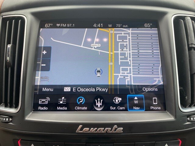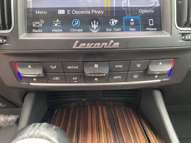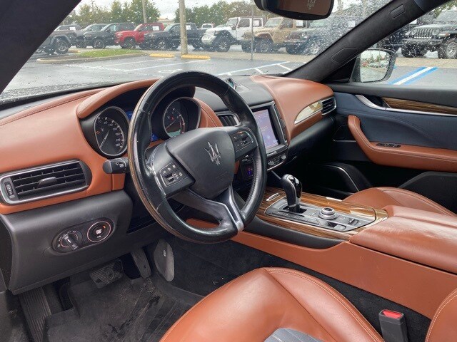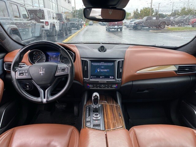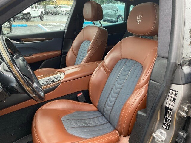 This Levante is well equipped with 12-Way Heated Power Front Seats, 14 Speakers, 2.80 Axle Ratio, 4-Wheel Disc Brakes, ABS brakes, Active Shift Paddles, Adaptive suspension, Air Conditioning, Alloy wheels, AM/FM radio: SiriusXM, Anti-whiplash front head restraints, Apple CarPlay/Android Auto, Auto High-beam Headlights, Auto-dimming door mirrors, Auto-dimming Rear-View mirror, Auto-leveling suspension, Automatic temperature control, Brake assist, Bumpers: body-color, Compass, Delay-off headlights, Driver door bin, Driver vanity mirror, Dual front impact airbags, Dual front side impact airbags, Electronic Stability Control, Exterior Parking Camera Rear, Four wheel independent suspension, Front & Rear Parking Sensors, Front anti-roll bar, Front Bucket Seats, Front Center Armrest, Front dual zone A/C, Front fog lights, Front reading lights, Full Premium Drilled Leather Upholstery, Garage door transmitter, Genuine wood console insert, Genuine wood dashboard insert, Genuine wood door panel insert, harman/kardon® Speakers, Headlight cleaning, Heated door mirrors, Heated front seats, Heated steering wheel, High intensity discharge headlights: Bi-Xenon, Illuminated entry, Key Fob w/Remote Start Function, Leather Shift Knob, Leather steering wheel, Low tire pressure warning, Memory seat, Navigation System, Occupant sensing airbag, Outside temperature display, Overhead airbag, Overhead console, Panic alarm, Passenger door bin, Passenger vanity mirror, Power door mirrors, Power driver seat, Power Liftgate, Power moonroof, Power passenger seat, Power steering, Power windows, Radio data system, Radio: Maserati Touch Control Plus, Rain sensing wipers, Rear anti-roll bar, Rear reading lights, Rear seat center armrest, Rear window defroster, Rear window wiper, Remote keyless entry, Roof rack: rails only, Security system, Speed control, Speed-sensing steering, Speed-Sensitive Wipers, Split folding rear seat, Steering wheel memory, Steering wheel mounted audio controls, Tachometer, Telescoping steering wheel, Tilt steering wheel, Traction control, Trip computer, Turn signal indicator mirrors, Variably intermittent wipers, Ventilated front seats, Wheels: 19" Zefiro Polished Alloy, and Wheels: 20" Nereo Alloy.