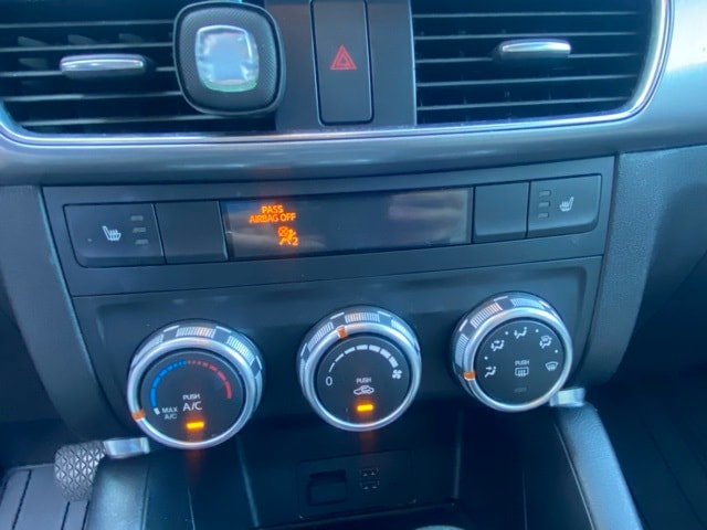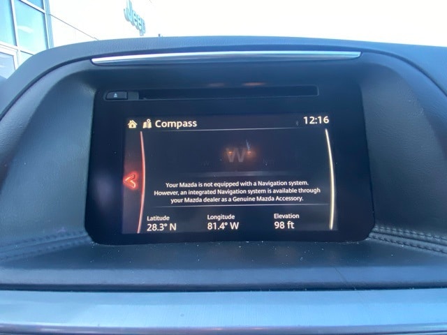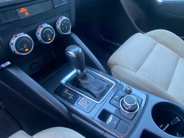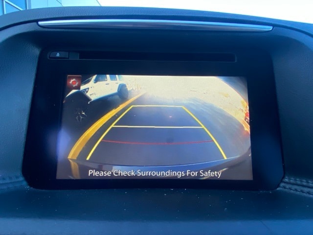 This Mazda CX-5 is well equipped with 17 x 7J Aluminum Alloy Wheels, 4-Wheel Disc Brakes, 4.624 Axle Ratio, 6 Speakers, ABS brakes, Air Conditioning, Alloy wheels, AM/FM radio, Brake assist, Bumpers: body-color, CD player, Cloth Seat Trim, Delay-off headlights, Driver door bin, Driver vanity mirror, Dual front impact airbags, Dual front side impact airbags, Electronic Stability Control, Emergency communication system: Mazda Connect, Exterior Parking Camera Rear, Four wheel independent suspension, Front anti-roll bar, Front Bucket Seats, Front Center Armrest, Front fog lights, Front reading lights, Heated front seats, Illuminated entry, Leather Shift Knob, Low tire pressure warning, Navigation System, Occupant sensing airbag, Outside temperature display, Overhead airbag, Overhead console, Panic alarm, Passenger door bin, Passenger vanity mirror, Power door mirrors, Power driver seat, Power steering, Power windows, Radio data system, Radio: AM/FM/CD/HD Modular Audio System w/6 Spkrs, Rear anti-roll bar, Rear reading lights, Rear seat center armrest, Rear window defroster, Rear window wiper, Remote keyless entry, Roof Rack Side Rails, Speed control, Speed-sensing steering, Split folding rear seat, Spoiler, Steering wheel mounted audio controls, Tachometer, Telescoping steering wheel, Tilt steering wheel, Traction control, Trip computer, Turn signal indicator mirrors, Variably intermittent wipers, and Wheel Locks.