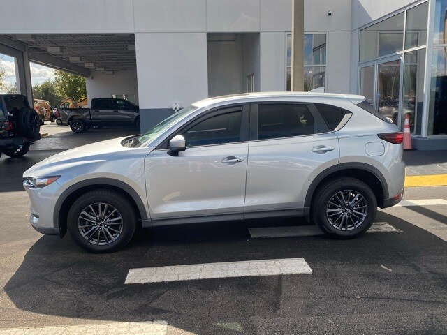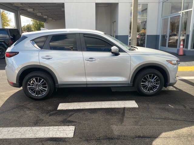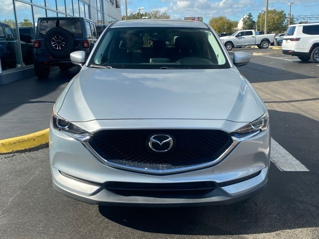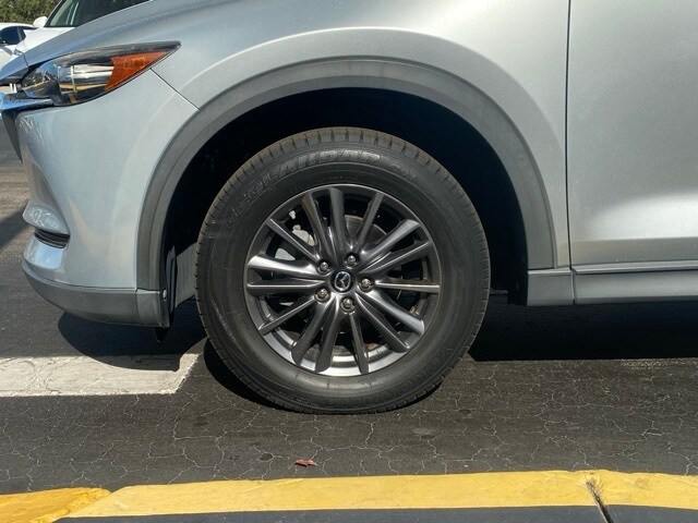 This Mazda CX-5 is well equipped with Touring Preferred Equipment Package (Auto Dimming Rearview Mirror w/HomeLink, Bose 10-Speaker Audio Sound System, Power Rear Liftgate, and Power Sliding-Glass Moonroof w/Interior Sunshade), 4-Wheel Disc Brakes, 4.325 Axle Ratio, 6 Speakers, ABS brakes, Air Conditioning, Alloy wheels, AM/FM radio, AppLink/Apple CarPlay and Android Auto, Auto High-beam Headlights, Automatic temperature control, Brake assist, Bumpers: body-color, Delay-off headlights, Driver door bin, Driver vanity mirror, Dual front impact airbags, Dual front side impact airbags, Electronic Stability Control, Emergency communication system, Exterior Parking Camera Rear, Four wheel independent suspension, Front anti-roll bar, Front Bucket Seats, Front Center Armrest, Front dual zone A/C, Front reading lights, Fully automatic headlights, Heated front seats, Heated Front Sport Seats, Illuminated entry, Leather Shift Knob, Leatherette Seat Trim, Low tire pressure warning, Occupant sensing airbag, Outside temperature display, Overhead airbag, Overhead console, Panic alarm, Passenger door bin, Passenger vanity mirror, Power door mirrors, Power driver seat, Power steering, Power windows, Radio data system, Radio: AM/FM/HD Audio System, Rain sensing wipers, Rear anti-roll bar, Rear reading lights, Rear seat center armrest, Rear window defroster, Rear window wiper, Remote keyless entry, Speed control, Speed-sensing steering, Split folding rear seat, Spoiler, Steering wheel mounted audio controls, Tachometer, Telescoping steering wheel, Tilt steering wheel, Traction control, Trip computer, Turn signal indicator mirrors, Variably intermittent wipers, and Wheels: 17" x 7J Gray Metallic Alloy.