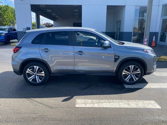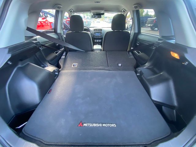 This Outlander Sport is well equipped with 4-Wheel Disc Brakes, 6.026 Axle Ratio, ABS brakes, Air Conditioning, Auto High-beam Headlights, Auto-dimming Rear-View mirror, Automatic temperature control, Brake assist, Bumpers: body-color, Delay-off headlights, Driver door bin, Driver vanity mirror, Dual front impact airbags, Dual front side impact airbags, Electronic Stability Control, Exterior Parking Camera Rear, Four wheel independent suspension, Front anti-roll bar, Front Bucket Seats, Front Center Armrest, Front reading lights, Fully automatic headlights, Heated door mirrors, Illuminated entry, Knee airbag, Low tire pressure warning, Occupant sensing airbag, Outside temperature display, Overhead airbag, Panic alarm, Passenger door bin, Passenger vanity mirror, Power door mirrors, Power steering, Power windows, Radio data system, Rain sensing wipers, Rear anti-roll bar, Rear seat center armrest, Rear window defroster, Rear window wiper, Remote keyless entry, Security system, Speed control, Speed-sensing steering, Split folding rear seat, Spoiler, Steering wheel mounted audio controls, Tachometer, Telescoping steering wheel, Tilt steering wheel, Traction control, Trip computer, and Variably intermittent wipers.