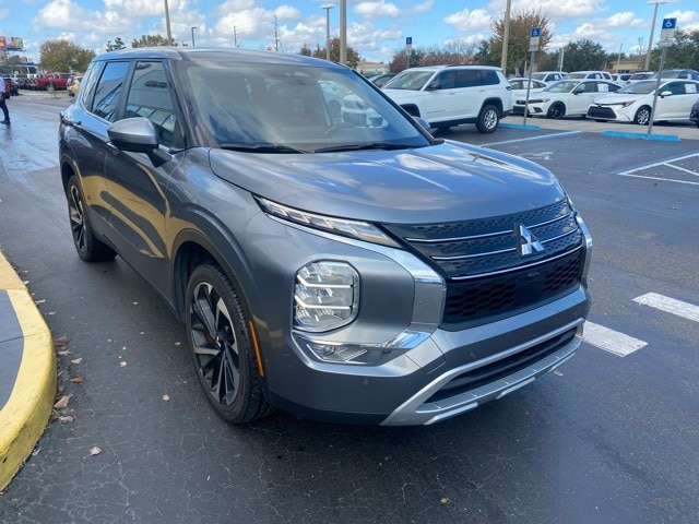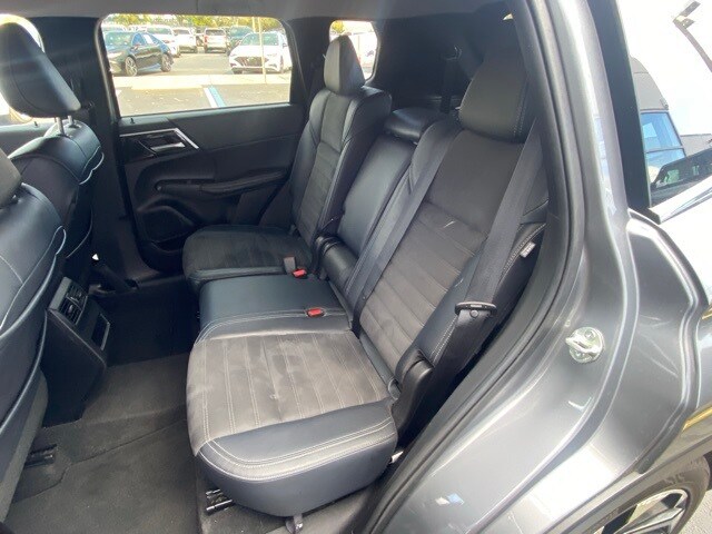 This Outlander is well equipped with 3rd row seats: split-bench, 4-Wheel Disc Brakes, 5.694 Axle Ratio, 6 Speakers, ABS brakes, Air Conditioning, Alloy wheels, AM/FM radio: SiriusXM, Android Auto & Apple CarPlay, Auto High-beam Headlights, Automatic temperature control, Brake assist, Bumpers: body-color, Driver door bin, Driver vanity mirror, Dual front impact airbags, Dual front side impact airbags, Electronic Stability Control, Emergency communication system: Mitsubishi Connect w/ 24-month trial, Exterior Parking Camera Rear, Four wheel independent suspension, Front anti-roll bar, Front Bucket Seats, Front Center Armrest w/Storage, Front dual zone A/C, Front fog lights, Front reading lights, Fully automatic headlights, Heated door mirrors, Heated Front Bucket Seats, Heated front seats, Illuminated entry, Knee airbag, Leather Shift Knob, Leather steering wheel, Low tire pressure warning, Navigation System, Occupant sensing airbag, Outside temperature display, Overhead airbag, Overhead console, Panic alarm, Passenger door bin, Passenger vanity mirror, Power door mirrors, Power driver seat, Power Liftgate, Power steering, Power windows, Radio data system, Radio: AM/FM 9.0" Navigation w/Smartphone Link, Rain sensing wipers, Rear anti-roll bar, Rear seat center armrest, Rear side impact airbag, Rear window defroster, Rear window wiper, Reclining 3rd row seat, Remote keyless entry, Security system, Speed control, Speed-Sensitive Wipers, Split folding rear seat, Spoiler, Steering wheel mounted audio controls, Synthetic Leather Seat Trim, Tachometer, Telescoping steering wheel, Tilt steering wheel, Traction control, Trip computer, Turn signal indicator mirrors, Variably intermittent wipers, and Wheels: 20" Two-Tone Alloy.