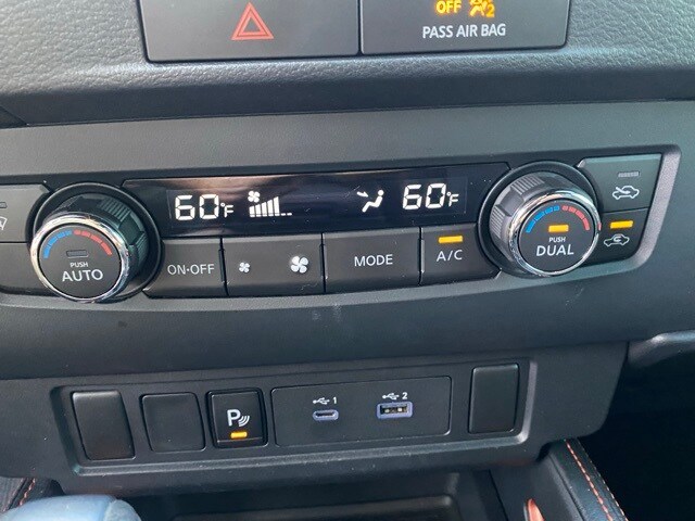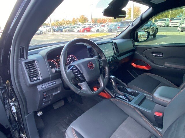 This Frontier is well equipped with Technology Package (Blind Spot Warning, High Beam Assist (HBA), Intelligent Cruise Control, Lane Departure Warning System, Rear Automatic Braking (RAB), Rear Cross Traffic Alert (RCTA), Rear Sonar System, and Traffic Sign Recognition (TSR)), 17" Alloy Wheels, 3.692 Axle Ratio, 4-Wheel Disc Brakes, 6 Speakers, ABS brakes, Air Conditioning, Alloy wheels, AM/FM radio: SiriusXM, Anti-whiplash front head restraints, Auto High-beam Headlights, Automatic temperature control, Brake assist, Bumpers: body-color, Delay-off headlights, Driver door bin, Driver vanity mirror, Dual front impact airbags, Dual front side impact airbags, Electronic Stability Control, Emergency communication system: NissanConnect Services, Floor Mats, Front anti-roll bar, Front Bucket Seats, Front Center Armrest, Front dual zone A/C, Front fog lights, Front reading lights, Front wheel independent suspension, Fully automatic headlights, Illuminated entry, Knee airbag, Leather Shift Knob, Low tire pressure warning, Navigation system: Nissan Navigation with Voice Recognition, Occupant sensing airbag, Overhead airbag, Overhead console, Panic alarm, Passenger door bin, Passenger vanity mirror, Power door mirrors, Power driver seat, Power steering, Power windows, PRO Embroidered Premium Cloth Seat Trim, PRO-X Mud Flaps, Radio data system, Radio: SXM/AM/FM/AUX/USB Audio System w/6 Speakers, Rear anti-roll bar, Rear seat center armrest, Rear step bumper, Remote Engine Start, Remote keyless entry, Security system, Speed control, Speed-sensing steering, Split folding rear seat, Steering wheel mounted audio controls, Tachometer, Tilt steering wheel, Traction control, Trip computer, Variably intermittent wipers, and Voltmeter.