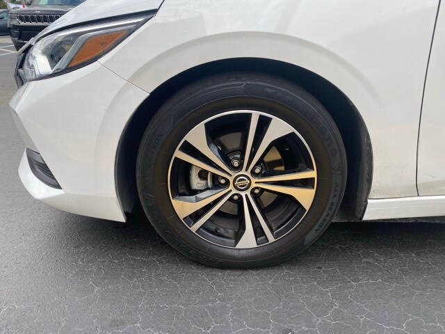 This Sentra is well equipped with 16" Alloy Wheels, 4-Wheel Disc Brakes, 6 Speakers, ABS brakes, Air Conditioning, Alloy wheels, AM/FM radio: SiriusXM, Auto High-beam Headlights, Blind Spot Warning, Brake assist, Bumpers: body-color, Carpeted Floor Mats w/Trunk Mat, Delay-off headlights, Driver door bin, Driver vanity mirror, Dual front impact airbags, Dual front side impact airbags, Electronic Stability Control, Four wheel independent suspension, Front anti-roll bar, Front Bucket Seats, Front Center Armrest, Front reading lights, Fully automatic headlights, Heated door mirrors, Illuminated entry, Knee airbag, Low tire pressure warning, NissanConnect featuring Apple CarPlay and Android Auto, Occupant sensing airbag, Outside temperature display, Overhead airbag, Overhead console, Panic alarm, Passenger door bin, Passenger vanity mirror, Power door mirrors, Power steering, Power windows, Premium Cloth Seat Trim, Radio data system, Radio: AM/FM w/RDS/MP3/Aux-In, Rear anti-roll bar, Rear Parking Sensors, Rear seat center armrest, Rear side impact airbag, Rear window defroster, Remote keyless entry, Security system, Speed control, Speed-sensing steering, Split folding rear seat, Steering wheel mounted audio controls, Tachometer, Telescoping steering wheel, Tilt steering wheel, Traction control, Trip computer, and Variably intermittent wipers.