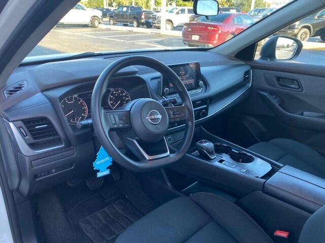 This Rogue is well equipped with 17" Aluminum Alloy Wheels, 4 Speakers, 4-Wheel Disc Brakes, 5.604 Axle Ratio, ABS brakes, Air Conditioning, Alloy wheels, AM/FM Radio, AM/FM radio: SiriusXM, Auto High-beam Headlights, Blind Spot Warning, Brake assist, Bumpers: body-color, Cloth Seat Trim, Delay-off headlights, Driver door bin, Driver vanity mirror, Dual front impact airbags, Dual front side impact airbags, Electronic Stability Control, Floor Mats w/1-Piece Cargo Area Protector, Four wheel independent suspension, Front anti-roll bar, Front Bucket Seats, Front Center Armrest, Front reading lights, Fully automatic headlights, Illuminated entry, Knee airbag, Low tire pressure warning, NissanConnect featuring Apple CarPlay and Android Auto, Occupant sensing airbag, Outside temperature display, Overhead airbag, Overhead console, Panic alarm, Passenger door bin, Passenger vanity mirror, Power door mirrors, Power steering, Power windows, Radio data system, Rear anti-roll bar, Rear Parking Sensors, Rear seat center armrest, Rear side impact airbag, Rear window defroster, Rear window wiper, Remote keyless entry, Speed control, Speed-Sensitive Wipers, Split folding rear seat, Spoiler, Steering wheel mounted audio controls, Tachometer, Telescoping steering wheel, Tilt steering wheel, Traction control, Trip computer, and Variably intermittent wipers.