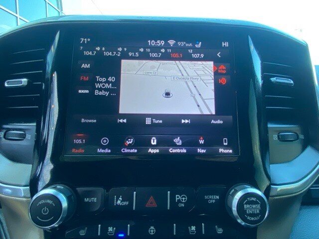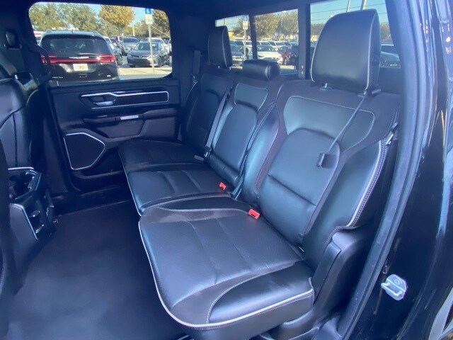 This 1500 is well equipped with Advanced Safety Group (Adaptive Cruise Control w/Stop & Go, Advanced Brake Assist, Auto High Beam Headlamp Control, Full Speed Forward Collision Warning Plus, Lane Keep Assist, and Parallel & Perp Park Assist w/Stop), Bed Utility Group (4 Adjustable Cargo Tie-Down Hooks, Pick-Up Box Lighting, and Spray In Bedliner), Black Appearance Package (#1 Seat Foam Cushion, 3 Rear Seat Head Restraints, 4 Way Front Headrests, Black Exterior Truck Badging, Black Headlamp Bezels, Black Interior Accents, Body Color Door Handles, Body Color Front Bumper, Body Color Rear Bumper w/Step Pads, Bucket Seats, Center Console Parts Module, Driver Seat Memory, Dual Exhaust w/Black Tips, Front Seat Back Map Pockets, Full Length Upgraded Floor Console, Grille B/Color Outline 3 Texture 4, Heated Front Seats, Heated Steering Wheel, Leather Trimmed Bucket Seats, Power 4-Way Driver Lumbar Adjust, Power 4-Way Passenger Lumbar Adjust, Power 8-Way Driver & Passenger Seats, Power Heated Fold-Away Mirrors, Rear 60/40 Folding Split Recline Seat, Sport Performance Hood, Ventilated Front Seats, and Wheels: 22" x 9" Polished Painted), Laramie Level 2 Equipment Group (1-Yr SiriusXM Guardian Trial, 5-Year SiriusXM Traffic Service, 5-Year SiriusXM Travel Link Service, 8.4" Touchscreen Display, Apple CarPlay, Blind Spot & Cross Path Detection, Disassociated Touchscreen Display, Foam Bottle Insert (Door Trim Panel), For Details, Visit DriveUconnect.com, GPS Antenna Input, GPS Navigation, harman/kardon 19 Speaker Premium Sound, HD Radio, Heated Second Row Seats, Integrated Center Stack Radio, No Satellite Coverage w/HI/AK/PR/VI/GU, ParkSense Front/Rear Park Assist w/Stop, Radio: Uconnect 4C Nav w/8.4" Display, Rain Sensitive Windshield Wipers, Rear Underseat Compartment Storage, Remote Tailgate Release, Single Disc Remote CD Player, SiriusXM Satellite Radio, SiriusXM Traffic Plus, SiriusXM Travel Link, Tailgate Ajar Warning Lamp, and Wireless Charging Pad), Quick Order Package 23H Laramie (48V Belt Starter Generator), 10 Speakers, 3.21 Rear Axle Ratio, 33 Gallon Fuel Tank, 4-Wheel Disc Brakes, ABS brakes, Adjustable pedals, Air Conditioning, Alloy wheels, AM/FM radio: SiriusXM, Apple CarPlay/Android Auto, Audio memory, Auto-dimming door mirrors, Auto-dimming Rear-View mirror, Automatic temperature control, Brake assist, Bumpers: chrome, Compass, Delay-off headlights, Driver door bin, Driver vanity mirror, Dual front impact airbags, Dual front side impact airbags, Electronic Stability Control, Front anti-roll bar, Front Center Armrest w/Storage, Front dual zone A/C, Front fog lights, Front reading lights, Front wheel independent suspension, Fully automatic headlights, Garage door transmitter, Google Android Auto, Heated door mirrors, Heated front seats, Heated steering wheel, Illuminated entry, Leather steering wheel, Leather Trim 40/20/40 Bench Seat, Low tire pressure warning, Manufacturer's Statement of Origin, Memory seat, Occupant sensing airbag, Outside temperature display, Overhead airbag, Overhead console, Panic alarm, ParkView Rear Back-Up Camera, Passenger door bin, Passenger vanity mirror, Pedal memory, Power door mirrors, Power driver seat, Power passenger seat, Power steering, Power windows, Radio data system, Radio: Uconnect 4 w/8.4" Display, RamBox Cargo Management System, Rear anti-roll bar, Rear seat center armrest, Rear step bumper, Rear window defroster, Remote keyless entry, Security system, Speed control, Split folding rear seat, Steering wheel mounted audio controls, Tachometer, Telescoping steering wheel, Tilt steering wheel, Traction control, Tri-Fold Tonneau Cover, Trip computer, Turn signal indicator mirrors, Variably intermittent wipers, Ventilated front seats, Voltmeter, and Wheels: 18" x 8" Aluminum Base Painted.