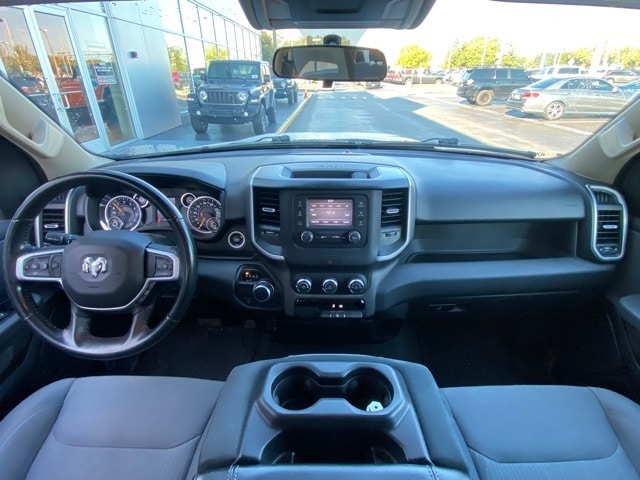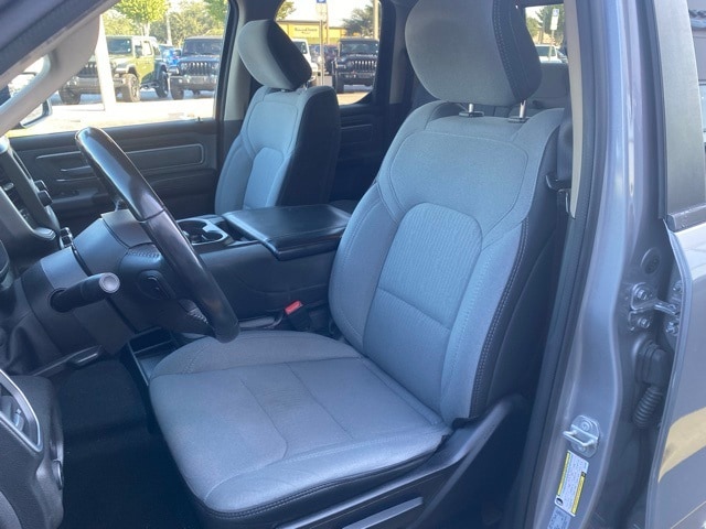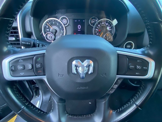 This 1500 is well equipped with Quick Order Package 23Z Big Horn (Big Horn Badge), 3 Rear Seat Head Restraints, 3.21 Rear Axle Ratio, 4 Way Front Headrests, 4-Wheel Disc Brakes, 48V Belt Starter Generator, 6 Speakers, ABS brakes, Air Conditioning, Alloy wheels, AM/FM radio, Brake assist, Bumpers: chrome, Cloth Bench Seat, Compass, Delay-off headlights, Driver door bin, Dual front impact airbags, Dual front side impact airbags, Electronic Stability Control, Front anti-roll bar, Front Center Armrest w/Storage, Front fog lights, Front reading lights, Front Seat Back Map Pockets, Front wheel independent suspension, Fully automatic headlights, GPS Antenna Input, Heated door mirrors, Illuminated entry, Leather steering wheel, Low tire pressure warning, Manual Adjust 4-Way Front Passenger Seat, Occupant sensing airbag, Outside temperature display, Overhead airbag, Overhead console, Panic alarm, ParkView Rear Back-Up Camera, Passenger door bin, Passenger vanity mirror, Power door mirrors, Power steering, Power windows, Radio data system, Radio: Uconnect 3 w/5" Display, Rear 60/40 Folding Seat, Rear anti-roll bar, Rear seat center armrest, Rear step bumper, Remote keyless entry, Speed control, Split folding rear seat, Steering wheel mounted audio controls, Tachometer, Telescoping steering wheel, Tilt steering wheel, Traction control, Trip computer, Variably intermittent wipers, Voltmeter, and Wheels: 18" x 8" Cast-Aluminum Painted.