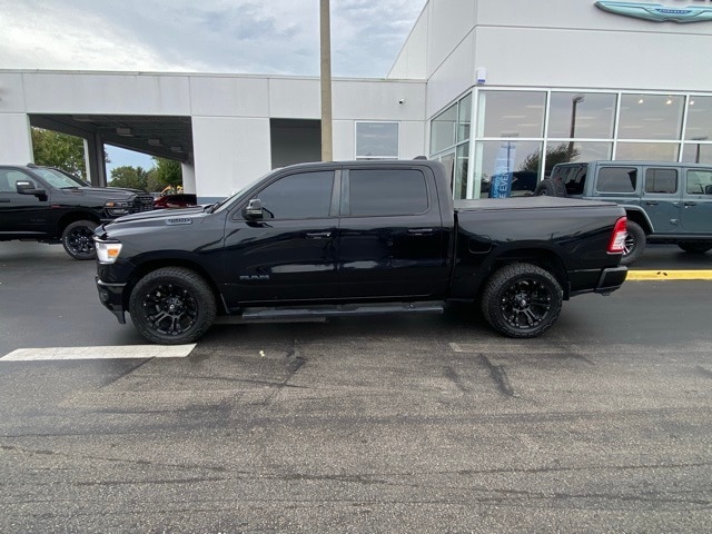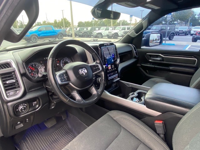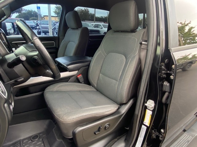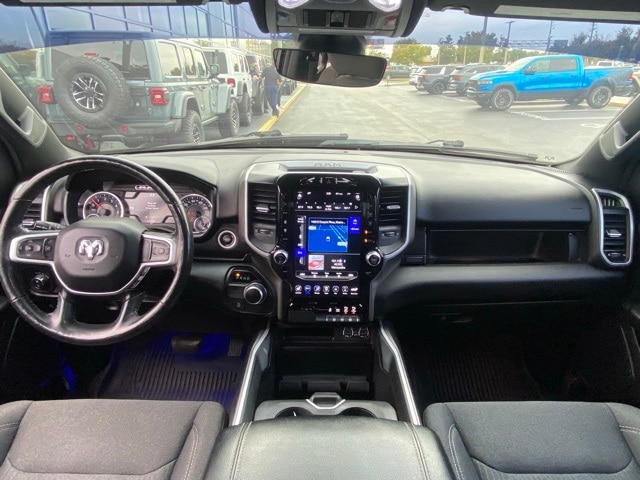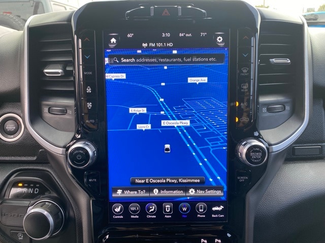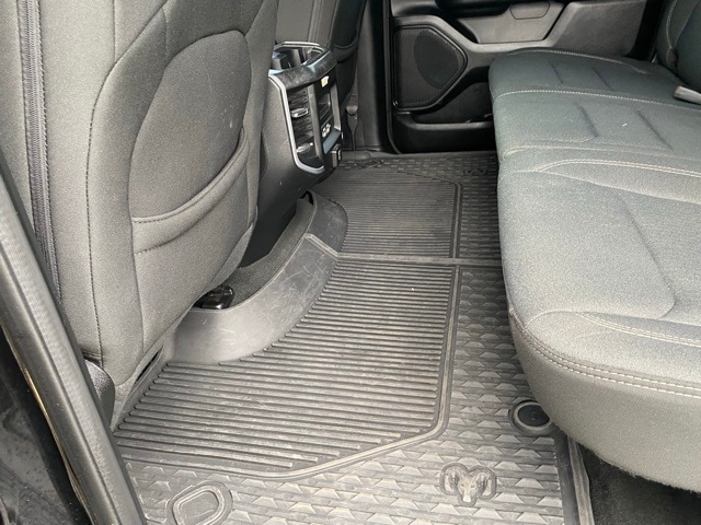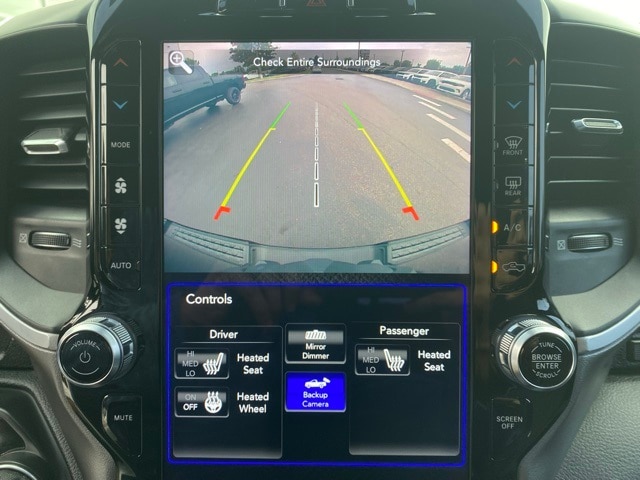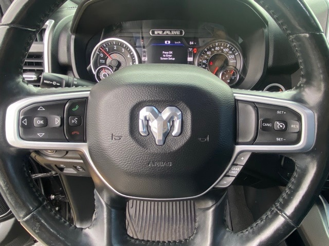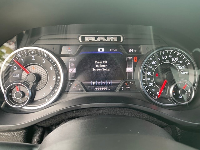 This 1500 is well equipped with Big Horn Level 2 Equipment Group (115V Auxiliary Power Outlet, 2 USB Full Function/Charge Only Media Hub, 2nd Row In Floor Storage Bins, 400W Inverter, Dampened Tailgate, Glove Box Lamp, ParkSense Front/Rear Park Assist w/Stop, Power 4-Way Driver Lumbar Adjust, Power 8-Way Driver Seat, Rear Dome w/On/Off Switch Lamp, Security Alarm, and SiriusXM Satellite Radio), Quick Order Package 27Z Big Horn, Sport Appearance Package (3 Rear Seat Head Restraints, 4 Way Front Headrests, Body Color Door Handles, Body Color Premium Power Mirrors, Deluxe Cloth Bucket Seats, Front Seat Back Map Pockets, Rear 60/40 Folding Seat, and Sport Decal), 1-Year SiriusXM Radio Service, 1-Yr SiriusXM Guardian Trial, 12" Touchscreen Display, 3.21 Rear Axle Ratio, 4-Wheel Disc Brakes, 48V Belt Starter Generator, 4G LTE Wi-Fi Hot Spot, 5-Year SiriusXM Travel Link Service, 6 Speakers, 9 Amplified Speakers w/Subwoofer, ABS brakes, Air Conditioning, Alloy wheels, AM/FM radio, Apple CarPlay, Brake assist, Bumpers: chrome, Cloth Bench Seat, Compass, Delay-off headlights, Driver door bin, Dual front impact airbags, Dual front side impact airbags, Electronic Stability Control, Front anti-roll bar, Front Center Armrest w/Storage, Front fog lights, Front reading lights, Front wheel independent suspension, Fully automatic headlights, Google Android Auto, GPS Antenna Input, GPS Navigation, Heated door mirrors, Illuminated entry, Leather steering wheel, Low tire pressure warning, Occupant sensing airbag, Outside temperature display, Overhead airbag, Overhead console, Panic alarm, ParkView Rear Back-Up Camera, Passenger door bin, Passenger vanity mirror, Power door mirrors, Power steering, Power windows, Radio data system, Radio: Uconnect 12 w/Navigation, Radio: Uconnect 3 w/5" Display, Rear anti-roll bar, Rear seat center armrest, Rear step bumper, Remote keyless entry, Remote Start System, SiriusXM Traffic Plus, SiriusXM w/360L, Speed control, Split folding rear seat, Steering wheel mounted audio controls, Tachometer, Telescoping steering wheel, Tilt steering wheel, Traction control, Trip computer, Variably intermittent wipers, Voltmeter, Wheels: 18" x 8" Cast-Aluminum Painted, and Wheels: 20" x 9" Aluminum Chrome Clad (WRK).