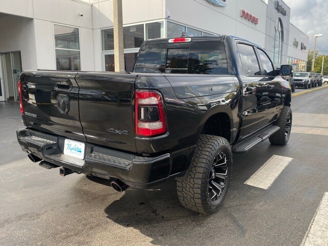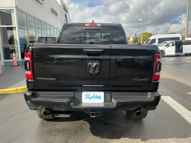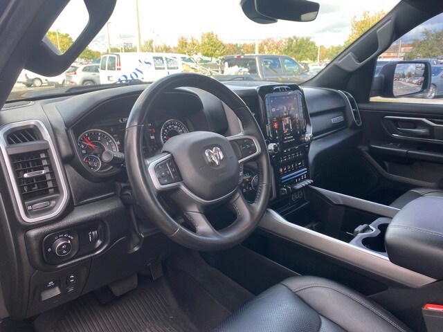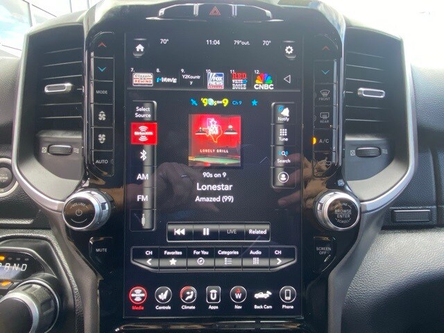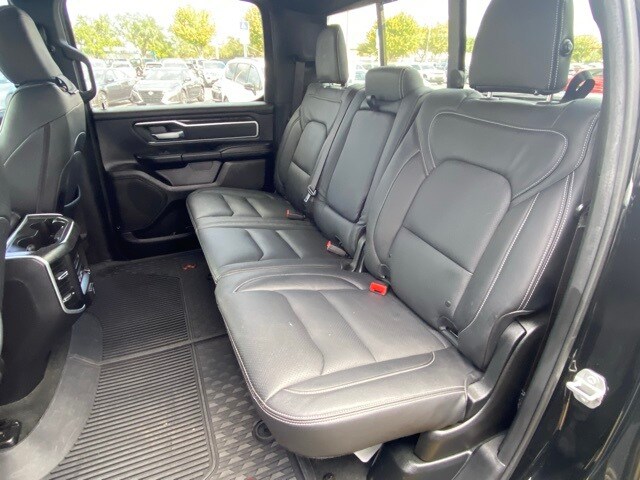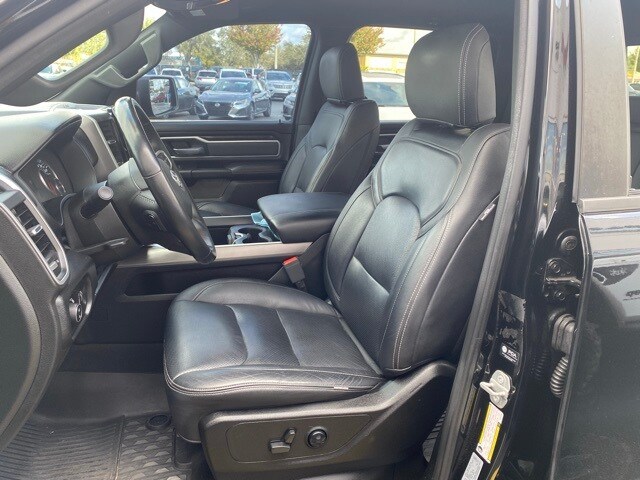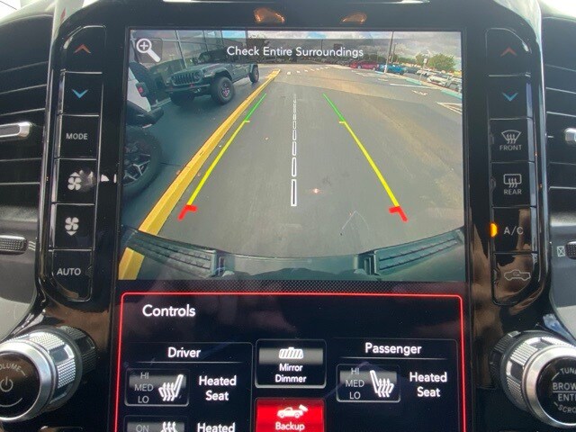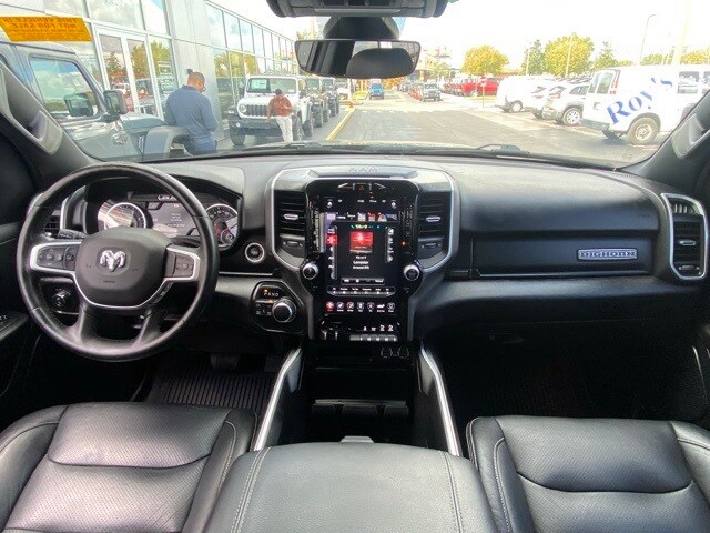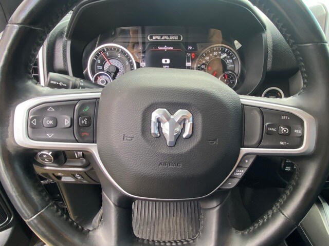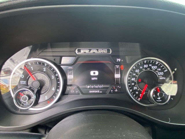 This 1500 is well equipped with Bed Utility Group (MOPAR 4 Adjustable Cargo Tie-Down Hooks, MOPAR Deployable Bed Step, MOPAR Spray In Bedliner, and Pick-Up Box Lighting), Big Horn Level 2 Equipment Group (115V Auxiliary Power Outlet, 115V Auxiliary Rear Power Outlet, 2nd Row In Floor Storage Bins, 400W Inverter, Air Conditioning ATC w/Dual Zone Control, Auto-Dimming Exterior Driver Mirror, Auto-Dimming Rear-View Mirror, Black Premium Power Mirrors, Class IV Receiver Hitch, Cluster 7.0" TFT Color Display, Exterior Mirrors Courtesy Lamps, Exterior Mirrors w/Supplemental Signals, Foam Bottle Insert (Door Trim Panel), For More Info, Call 800-643-2112, Glove Box Lamp, Heated Front Seats, Heated Steering Wheel, Media Hub w/2 Charge Only USBs, ParkSense Front/Rear Park Assist w/Stop, Power 4-Way Driver Lumbar Adjust, Power 8-Way Driver Seat, Power Adjustable Pedals, Power-Folding Mirrors, Rear Dome w/On/Off Switch Lamp, Rear Power Sliding Window, Rear Window Defroster, Security Alarm, SiriusXM Radio Service, Sun Visors w/Illuminated Vanity Mirrors, and Universal Garage Door Opener), Night Edition (3 Rear Seat Head Restraints, 4 Way Front Headrests, Accent Color Premium Power Mirrors, Anti-Spin Differential Rear Axle, Black Exterior Truck Badging, Black Headlamp Bezels, Black Interior Accents, Black Painted Exterior Mirrors Caps, Body Color Front Bumper, Body Color Rear Bumper w/Step Pads, Bucket Seats, Center Console Parts Module, Deluxe Cloth Bucket Seats, Dual Exhaust w/Black Tips, Exterior Mirrors w/Memory, Front Seat Back Map Pockets, Full Length Floor Console, Manual Adjust 4-Way Front Passenger Seat, Rear 60/40 Folding Seat, and Wheels: 20" x 9.0" Premium Paint/Polished), Quick Order Package 28Z Big Horn (Big Horn Badge), 1-Yr SiriusXM Guardian Trial, 12" Touchscreen Display, 3.21 Rear Axle Ratio, 4-Wheel Disc Brakes, 40/20/40 Split Bench Seat, 48V Belt Starter Generator, 4G LTE Wi-Fi Hot Spot, 5-Year SiriusXM Traffic Service, 5-Year SiriusXM Travel Link Service, 6 Speakers, 9 Amplified Speakers w/Subwoofer, ABS brakes, Air Conditioning, Alloy wheels, AM/FM radio, Apple CarPlay, Black Exterior Mirrors, Blind Spot & Cross Path Detection, Brake assist, Bumpers: chrome, Cloth Bench Seat, Compass, Delay-off headlights, Disassociated Touchscreen Display, Driver door bin, Dual front impact airbags, Dual front side impact airbags, Electronic Stability Control, Exterior 115V AC Outlet, For Details, Visit DriveUconnect.com, Front anti-roll bar, Front Center Armrest w/Storage, Front fog lights, Front reading lights, Front wheel independent suspension, Fully automatic headlights, Google Android Auto, GPS Antenna Input, GPS Navigation, HD Radio, Heated door mirrors, Illuminated entry, Integrated Center Stack Radio, Integrated Voice Command w/Bluetooth, Leather steering wheel, LED Footwell Lighting, LED Taillamps, Low tire pressure warning, Manufacturer's Statement of Origin, Mopar Black Tubular Side Steps, MOPAR Front & Rear Rubber Floor Mats, Multi-Function Tailgate, Occupant sensing airbag, Outside temperature display, Overhead airbag, Overhead console, Panic alarm, ParkView Rear Back-Up Camera, Passenger door bin, Passenger vanity mirror, Power door mirrors, Power steering, Power windows, Radio data system, Radio: Uconnect 12 w/Navigation, Radio: Uconnect 3 w/5" Display, RamBox Cargo Management System, Rear anti-roll bar, Rear seat center armrest, Rear step bumper, Remote keyless entry, Remote Start System, SiriusXM Satellite Radio, SiriusXM Traffic Plus, SiriusXM Travel Link, SiriusXM w/360L, Speed control, Split folding rear seat, Steering wheel mounted audio controls, Tachometer, Telescoping steering wheel, Tilt steering wheel, Traction control, Trailer Brake Control, Trip computer, USB Host Flip, Variably intermittent wipers, Voltmeter, and Wheels: 18" x