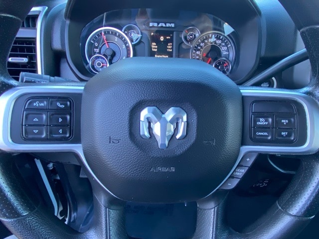 This 2500 is well equipped with Quick Order Package 2HZ Big Horn, 2 Way Rear Headrest Seat, 3.73 Axle Ratio, 4 Way Front Headrests, 4-Wheel Disc Brakes, 40/20/40 Split Bench Seat, 4G LTE Wi-Fi Hot Spot, 6 Speakers, 8.4" Touchscreen Display, ABS brakes, Active Noise Control System, Air Conditioning, AM/FM radio: SiriusXM, Apple CarPlay, Apple CarPlay/Android Auto, Bluetooth Handsfree Phone & Audio, Brake assist, Bumpers: chrome, Center Hub, Center Stack Storage Drawer, Chrome Flat Cab-Length Side Steps, Cloth 40/20/40 Bench Seat, Compass, Connectivity - US/Canada, Delay-off headlights, Driver door bin, Dual front impact airbags, Dual front side impact airbags, Electronic Stability Control, Electronically Controlled Throttle, Front anti-roll bar, Front Center Armrest w/Storage, Front License Plate Bracket, Front reading lights, Fully automatic headlights, Global Telematics Box Module (TBM), Google Android Auto, GPS Antenna Input, Heated door mirrors, Illuminated entry, Integrated Center Stack Radio, Integrated Voice Command w/Bluetooth, Low tire pressure warning, Manual Adjust 4-Way Driver Seat, Manufacturer's Statement of Origin, Occupant sensing airbag, Outside temperature display, Overhead airbag, Overhead console, Panic alarm, ParkView Rear Back-Up Camera, Passenger door bin, Passenger vanity mirror, Power door mirrors, Power steering, Power windows, Radio data system, Radio: Uconnect 5 W w/8.4" Display, Rear anti-roll bar, Rear Folding Seat, Rear seat center armrest, Rear step bumper, Remote keyless entry, Selectable Tire Fill Alert, SiriusXM Radio Service, SiriusXM Satellite Radio, Speed control, Tachometer, Tilt steering wheel, Tip Start, Tow Hooks, Traction control, Trip computer, Turn signal indicator mirrors, Variably intermittent wipers, Vendor Painted Cargo Box, Vendor Painted Cargo Box Tracking, Voltmeter, and Wheels: 18" x 8.0" Steel Chrome Clad.