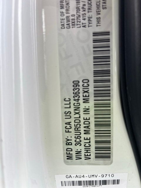 This 2500 is well equipped with Quick Order Package 2HZ Big Horn, 2 Way Rear Headrest Seat, 3.73 Axle Ratio, 4 Way Front Headrests, 4-Wheel Disc Brakes, 40/20/40 Split Bench Seat, 4G LTE Wi-Fi Hot Spot, 6 Speakers, 8.4" Touchscreen Display, ABS brakes, Active Noise Control System, Air Conditioning, AM/FM radio: SiriusXM, Apple CarPlay, Apple CarPlay/Android Auto, Bluetooth Handsfree Phone & Audio, Brake assist, Bumpers: chrome, Center Hub, Center Stack Storage Drawer, Chrome Flat Cab-Length Side Steps, Cloth 40/20/40 Bench Seat, Compass, Connectivity - US/Canada, Delay-off headlights, Driver door bin, Dual front impact airbags, Dual front side impact airbags, Electronic Stability Control, Electronically Controlled Throttle, Front anti-roll bar, Front Center Armrest w/Storage, Front License Plate Bracket, Front reading lights, Fully automatic headlights, Global Telematics Box Module (TBM), Google Android Auto, GPS Antenna Input, Heated door mirrors, Illuminated entry, Integrated Center Stack Radio, Integrated Voice Command w/Bluetooth, Low tire pressure warning, Manual Adjust 4-Way Driver Seat, Manufacturer's Statement of Origin, Occupant sensing airbag, Outside temperature display, Overhead airbag, Overhead console, Panic alarm, ParkView Rear Back-Up Camera, Passenger door bin, Passenger vanity mirror, Power door mirrors, Power steering, Power windows, Radio data system, Radio: Uconnect 5 W w/8.4" Display, Rear anti-roll bar, Rear Folding Seat, Rear seat center armrest, Rear step bumper, Remote keyless entry, Selectable Tire Fill Alert, SiriusXM Radio Service, SiriusXM Satellite Radio, Speed control, Tachometer, Tilt steering wheel, Tip Start, Tow Hooks, Traction control, Trip computer, Turn signal indicator mirrors, Variably intermittent wipers, Vendor Painted Cargo Box, Vendor Painted Cargo Box Tracking, Voltmeter, and Wheels: 18" x 8.0" Steel Chrome Clad.