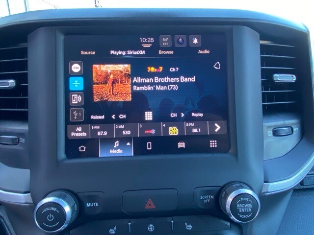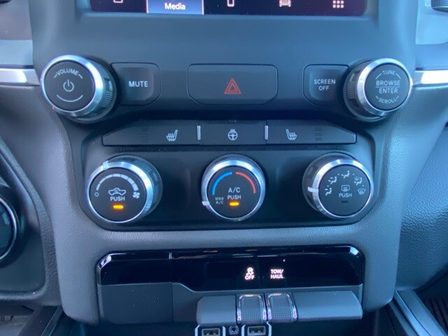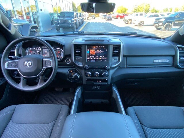 This 1500 is well equipped with Big Horn Level 1 Equipment Group (2nd Row In Floor Storage Bins, 4G LTE Wi-Fi Hot Spot, 8.4" Touchscreen Display, Apple CarPlay, Auto-Dimming Exterior Driver Mirror, Auto-Dimming Rear-View Mirror, Black Exterior Mirrors, Black Premium Power Mirrors, Bluetooth Handsfree Phone & Audio, Class IV Receiver Hitch, Connectivity - US/Canada, Convex Wide-Angle Exterior Mirror Insert, Electric Shift-On-Demand Transfer Case, Exterior Mirrors Courtesy Lamps, Exterior Mirrors w/Heating Element, Exterior Mirrors w/Supplemental Signals, For Details, Visit DriveUconnect.com, For More Info, Call 800-643-2112, Front Fog Lamps, Glove Box Lamp, Google Android Auto, GPS Antenna Input, Heated Front Seats, Heated Steering Wheel, Integrated Center Stack Radio, Passenger Sun Visor w/Illuminated Mirror, Power-Folding Mirrors, Radio: Uconnect 5 W w/8.4" Display, Rear Dome w/On/Off Switch Lamp, Rear Power Sliding Window, Rear Window Defroster, SiriusXM Satellite Radio, and USB Host Flip), Quick Order Package 23Z Big Horn (Big Horn Badge), 3 Rear Seat Head Restraints, 3.21 Rear Axle Ratio, 3.55 Rear Axle Ratio, 4 Way Front Headrests, 4-Wheel Disc Brakes, 48V Belt Starter Generator, 6 Speakers, ABS brakes, Air Conditioning, Alloy wheels, AM/FM radio, Brake assist, Bumpers: chrome, Cloth Bench Seat, Compass, Delay-off headlights, Driver door bin, Dual front impact airbags, Dual front side impact airbags, Electronic Stability Control, Emergency communication system: SiriusXM Guardian, Front anti-roll bar, Front Center Armrest w/Storage, Front reading lights, Front Seat Back Map Pockets, Front wheel independent suspension, Fully automatic headlights, Global Telematics Box Module (TBM), Heated door mirrors, Illuminated entry, Integrated Voice Command w/Bluetooth, Leather steering wheel, Low tire pressure warning, MOPAR Front & Rear Rubber Floor Mats, Occupant sensing airbag, Outside temperature display, Overhead airbag, Overhead console, Panic alarm, ParkView Rear Back-Up Camera, Passenger door bin, Passenger vanity mirror, Power door mirrors, Power steering, Power windows, Radio data system, Radio: Uconnect 3 w/5" Display, RAM Grille Badge - Chrome, Rear 60/40 Folding Seat, Rear anti-roll bar, Rear seat center armrest, Rear step bumper, Rear Underseat Compartment Storage, Rear Wheelhouse Liners, Remote keyless entry, Remote Start System, Speed control, Split folding rear seat, Steering wheel mounted audio controls, Tachometer, Telescoping steering wheel, Tilt steering wheel, Traction control, Trip computer, Variably intermittent wipers, Voltmeter, Wheels: 18" x 8" Cast-Aluminum Painted, and Wheels: 20" x 9" Aluminum Chrome Clad (WRK).