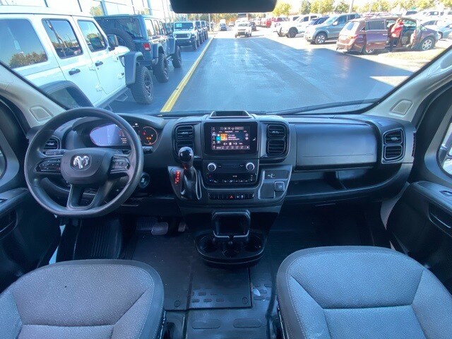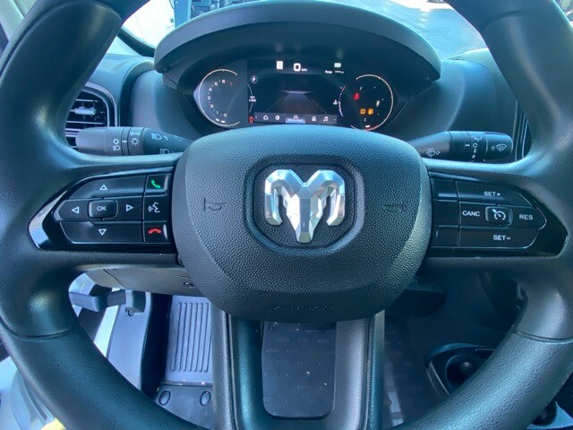 This ProMaster 2500 is well equipped with Quick Order Package 22A, 4 Speakers, 4-Wheel Disc Brakes, 4.08 Axle Ratio, ABS brakes, Air Conditioning, AM/FM radio: SiriusXM, Apple CarPlay/Android Auto, Black/Gray Seats, Bodyside moldings, Brake assist, Center Wheel Cap, Cloth Bucket Seats, Daytime Running Headlamps, Driver door bin, Driver Seat Armrest, Driver's Seat Mounted Armrest, Electronic Stability Control, Front anti-roll bar, Front Bucket Seats, Front License Plate Bracket, Front reading lights, Front wheel independent suspension, Heavy Duty Suspension, Illuminated entry, Low tire pressure warning, Manual Folding Exterior Mirrors, Manufacturer's Statement of Origin, MOPAR Cargo Compartment Floor Mat, Outside temperature display, Overhead airbag, Overhead console, ParkView Rear Back-Up Camera, Passenger Bucket Seat, Passenger door bin, Power steering, Power windows, Radio: Uconnect 5 w/7" Display, Rear Cargo LED Lamp, Remote keyless entry, Speed Control, Steering wheel mounted audio controls, Tachometer, Telescoping steering wheel, Traction control, Trip computer, Turn signal indicator mirrors, Variably intermittent wipers, and Wheels: 16" x 6.0" Steel.