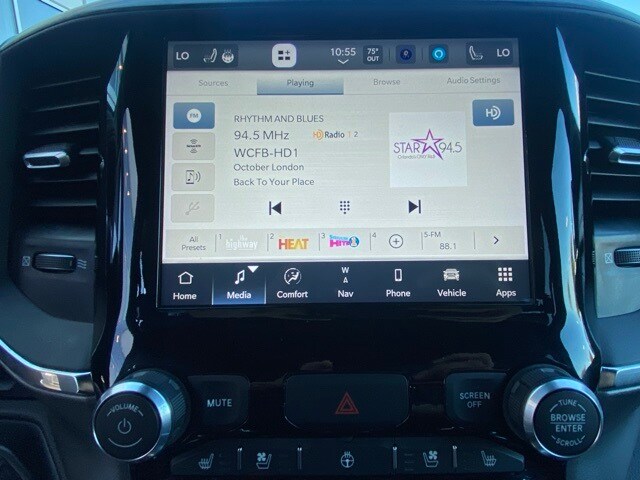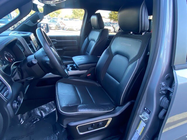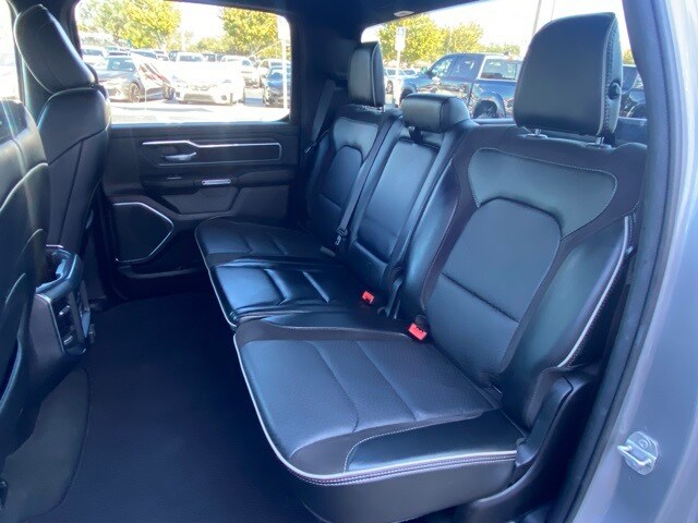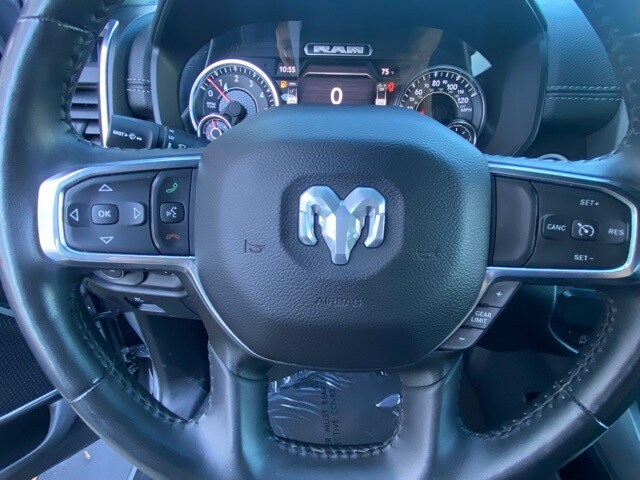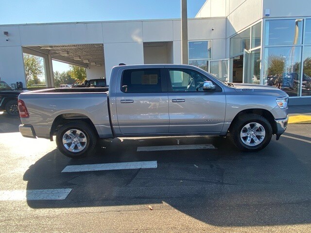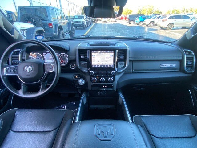 This 1500 is well equipped with Quick Order Package 27H Laramie, 10 Speakers, 3 Rear Seat Head Restraints, 3.21 Rear Axle Ratio, 4 Way Front Headrests, 4-Wheel Disc Brakes, 48V Belt Starter Generator, 4G LTE Wi-Fi Hot Spot, ABS brakes, Air Conditioning, Alloy wheels, AM/FM radio: SiriusXM with 360L, Apple CarPlay, Apple CarPlay/Android Auto, Audio memory, Auto-dimming door mirrors, Auto-Dimming Exterior Driver Mirror, Auto-dimming Rear-View mirror, Automatic temperature control, Brake assist, Bumpers: chrome, Chrome Exterior Mirrors, Compass, Connected Travel & Traffic Services, Connectivity - US/Canada, Convex Wide-Angle Exterior Mirror Insert, Delay-off headlights, Driver door bin, Driver Seat Memory, Driver vanity mirror, Dual front impact airbags, Dual front side impact airbags, Electronic Stability Control, Exterior Mirrors Courtesy Lamps, Exterior Mirrors w/Heating Element, Exterior Mirrors w/Memory, Exterior Mirrors w/Supplemental Signals, Exterior Parking Camera Rear, For Details, Visit DriveUconnect.com, For More Info, Call 800-643-2112, Front anti-roll bar, Front Center Armrest w/Storage, Front dual zone A/C, Front fog lights, Front License Plate Bracket, Front reading lights, Front Seat Back Map Pockets, Front wheel independent suspension, Fully automatic headlights, Garage door transmitter, Global Telematics Box Module (TBM), Google Android Auto, GPS Navigation, HD Radio, Heated door mirrors, Heated Front Seats, Heated front seats, Heated Steering Wheel, Heated steering wheel, Illuminated entry, Integrated Voice Command w/Bluetooth, Leather steering wheel, Leather Trim 40/20/40 Bench Seat, Low tire pressure warning, Manufacturer's Statement of Origin, Memory seat, Navigation System, Occupant sensing airbag, Outside temperature display, Overhead airbag, Overhead console, Panic alarm, Passenger door bin, Passenger vanity mirror, Power 2-Way Driver Lumbar Adjust, Power 2-Way Passenger Lumbar Adjust, Power 8-Way Driver & Passenger Seats, Power door mirrors, Power driver seat, Power passenger seat, Power steering, Power windows, Power-Folding Mirrors, Radio data system, Radio: Uconnect 5 Nav w/8.4" Display, RAM Grille Badge - Chrome, Rear 60/40 Folding Seat, Rear anti-roll bar, Rear seat center armrest, Rear step bumper, Remote keyless entry, Security system, SiriusXM Radio Service, SiriusXM w/360L, Speed control, Split folding rear seat, Steering wheel mounted audio controls, Tachometer, Telescoping steering wheel, Tilt steering wheel, Traction control, Trip computer, Turn signal indicator mirrors, Variably intermittent wipers, Ventilated Front Seats, Ventilated front seats, Voltmeter, and Wheels: 18" x 8" Aluminum Base Painted.