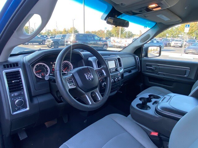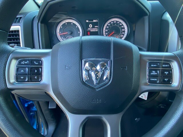 This 1500 Classic is well equipped with 17" x 7" Aluminum Wheels, 3.21 Rear Axle Ratio, 4-Wheel Disc Brakes, 40/20/40 Split Bench Seat, 6 Speakers, ABS brakes, Active Grille Shutters, Air Conditioning, Alloy wheels, AM/FM radio: SiriusXM, Audio Input Jack for Mobile Devices, Black Exterior Mirrors, Brake assist, Bumpers: chrome, Center Hub, Charge Only Remote USB Port, Cloth 40/20/40 Bench Seat, Compass, Delay-off headlights, Driver door bin, Dual front impact airbags, Dual front side impact airbags, Electronic Shift, Electronic Stability Control, Exterior Mirrors w/Heating Element, Front anti-roll bar, Front Armrest w/3 Cupholders, Front Center Armrest w/Storage, Front reading lights, Front wheel independent suspension, Fully automatic headlights, GPS Antenna Input, Heated door mirrors, Illuminated entry, Integrated Voice Command w/Bluetooth, Low tire pressure warning, Occupant sensing airbag, Outside temperature display, Overhead airbag, Overhead console, Panic alarm, ParkView Rear Back-Up Camera, Passenger door bin, Passenger vanity mirror, Power door mirrors, Power steering, Power windows, Radio data system, Radio: Uconnect 3 w/5" Display, Rear anti-roll bar, Rear step bumper, Remote keyless entry, Remote USB Port, Speed control, Tachometer, Tilt steering wheel, Tip Start, Traction control, Trip computer, Variably intermittent wipers, and Voltmeter.