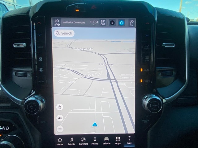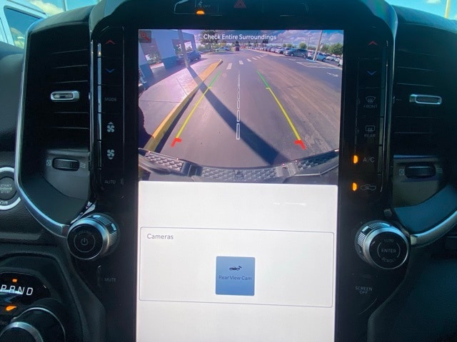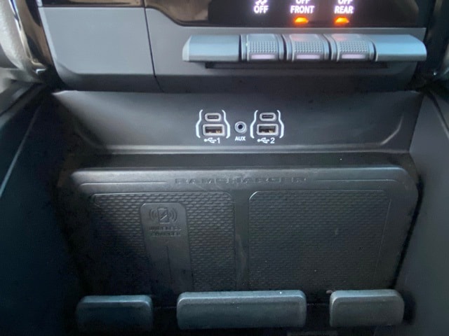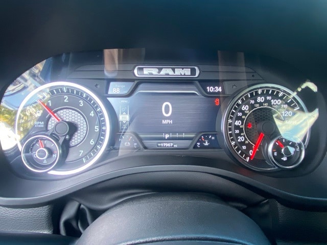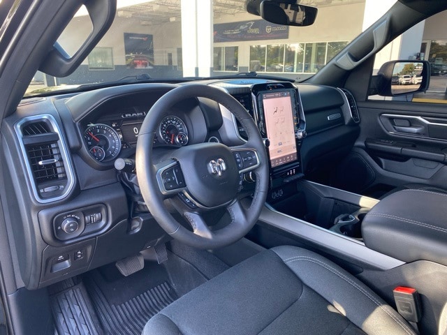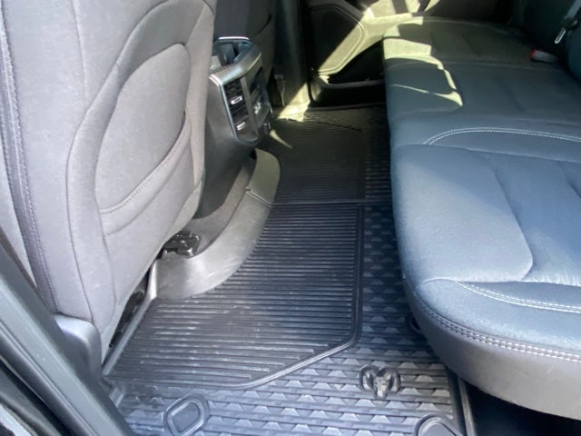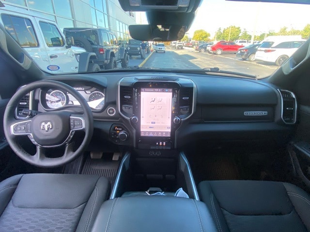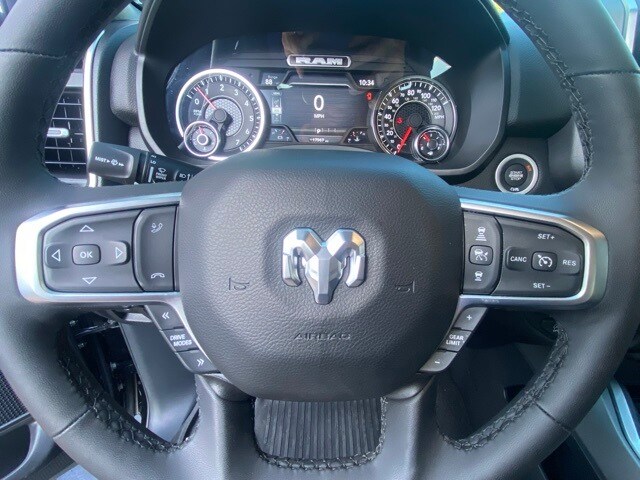 This 1500 is well equipped with Big Horn Level 2 Equipment Group (115V Auxiliary Power Outlet, 115V Auxiliary Rear Power Outlet, 12" Touchscreen Display, 2nd Row In Floor Storage Bins, 400W Inverter, 4G LTE Wi-Fi Hot Spot, 9 Amplified Speakers w/Subwoofer, Air Conditioning ATC w/Dual Zone Control, Apple CarPlay, Auto Power-Folding Mirrors, Auto-Dimming Exterior Driver Mirror, Auto-Dimming Rear-View Mirror, Black Exterior Mirrors, Black Premium Power Mirrors, Cluster 7.0" TFT Color Display, Configurable Drive Mode, Connected Travel & Traffic Services, Connectivity - US/Canada, Convex Wide-Angle Exterior Mirror Insert, Exterior Mirrors Courtesy Lamps, Exterior Mirrors w/Heating Element, Exterior Mirrors w/Supplemental Signals, Glove Box Lamp, Google Android Auto, GPS Antenna Input, GPS Navigation, HD Radio, Heated Front Seats, Heated Steering Wheel, Integrated Voice Command w/Bluetooth, Leather Wrapped Steering Wheel, LED Dome Lamp w/On/Off Switch, LED Footwell Lighting, Media Hub w/2 Charge Only USBs, Overhead LED Lamps, Power 2-Way Driver Lumbar Adjust, Power Adjust 8-Way Driver Seat, Power Adjustable Pedals, Premium Overhead Console, Radio: Uconnect 5 Nav w/12.0" Display, Rear Power Sliding Window, Rear Window Defroster, Remote Tailgate Release, Security Alarm, SiriusXM w/360L, Steering Wheel Mounted Audio Controls, Sun Visors w/Illuminated Vanity Mirrors, Universal Garage Door Opener, and USB Host Flip), Night Edition (3 Rear Seat Head Restraints, 4 Way Front Headrests, Accent Color Door Handles, Accent Color Premium Power Mirrors, Accent Color Tailgate Handle, Anti-Spin Differential Rear Axle, Black Exterior Truck Badging, Black Headlamp Bezels, Black Interior Accents, Black Painted Exterior Mirrors Caps, Black Tail Lamp Bezels, Body Color Front Bumper, Body Color Rear Bumper w/Step Pads, Bucket Seats, Deluxe Cloth Bucket Seats, Front Seat Back Map Pockets, Full Length Floor Console, Grille Black Surround Black Mesh, Manual Adjust 4-Way Front Passenger Seat, RAM Grille Badge - Black, Rear 60/40 Folding Seat, Rear Center Armrest, and Wheels: 20" x 9.0" Aluminum Painted Clad), Quick Order Package 23Z Big Horn (Big Horn Badge), 4-Wheel Disc Brakes, 6 Speakers, ABS brakes, Air Conditioning, Alloy wheels, AM/FM radio, Apple CarPlay/Android Auto, Auto High-beam Headlights, Brake assist, Bumpers: chrome, Cloth Bench Seat, Compass, Delay-off headlights, Driver door bin, Dual front impact airbags, Dual front side impact airbags, Electronic Stability Control, Front anti-roll bar, Front Center Armrest w/Storage, Front fog lights, Front License Plate Bracket, Front reading lights, Front wheel independent suspension, Fully automatic headlights, Heated door mirrors, Illuminated entry, Low tire pressure warning, Manual Folding Exterior Mirrors, MOPAR Front & Rear Rubber Floor Mats, Occupant sensing airbag, Outside temperature display, Overhead airbag, Overhead console, Panic alarm, ParkView Rear Back-Up Camera, Passenger door bin, Passenger vanity mirror, Power door mirrors, Power steering, Power windows, Radio data system, Radio: Uconnect 5 W w/8.4" Display, RAM Grille Badge - Chrome, Rear anti-roll bar, Rear seat center armrest, Rear step bumper, Rear Underseat Compartment Storage, Remote keyless entry, Speed control, Split folding rear seat, Supplier Part Tracking (J-1), Tachometer, Telescoping steering wheel, Tilt steering wheel, Traction control, Trip computer, Variably intermittent wipers, Voltmeter, and Wheels: 18" x 8" Cast-Aluminum Painted.