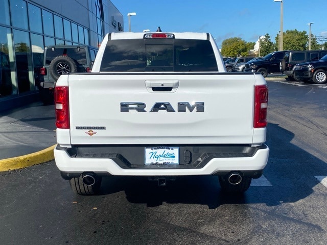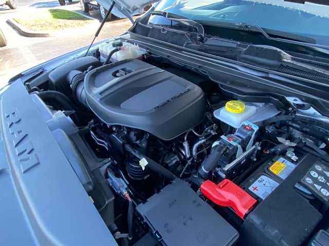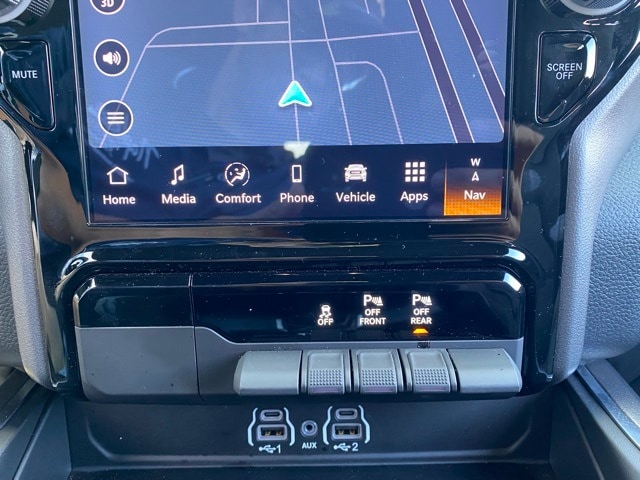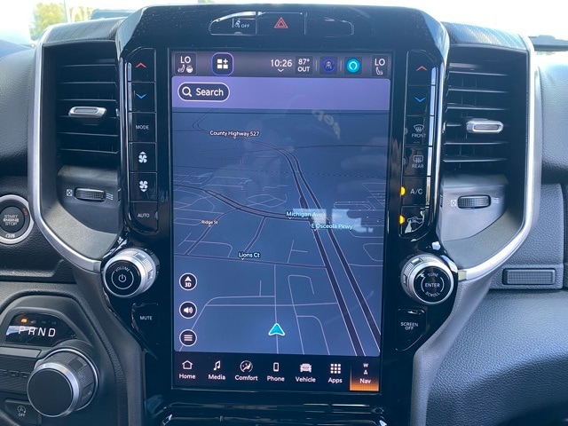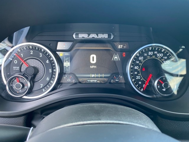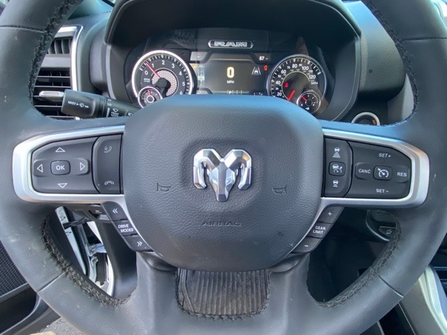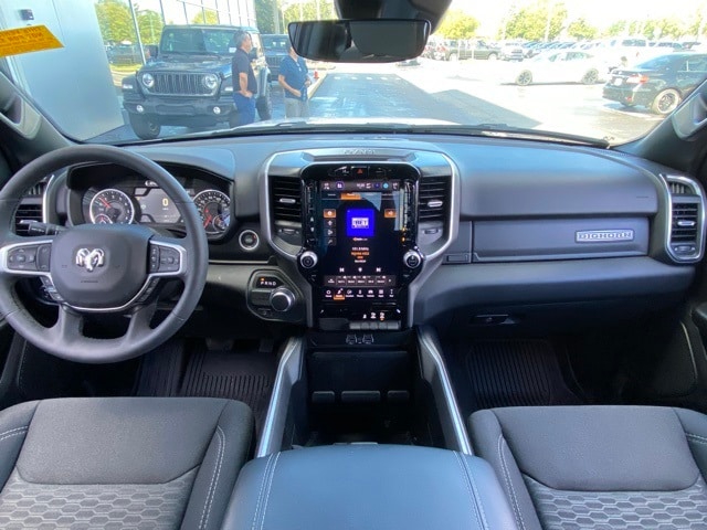 This 1500 is well equipped with Big Horn Level 2 Equipment Group (115V Auxiliary Power Outlet, 115V Auxiliary Rear Power Outlet, 12" Touchscreen Display, 2nd Row In Floor Storage Bins, 400W Inverter, 4G LTE Wi-Fi Hot Spot, 9 Amplified Speakers w/Subwoofer, Air Conditioning ATC w/Dual Zone Control, Apple CarPlay, Auto Power-Folding Mirrors, Auto-Dimming Exterior Driver Mirror, Auto-Dimming Rear-View Mirror, Black Exterior Mirrors, Black Premium Power Mirrors, Cluster 7.0" TFT Color Display, Configurable Drive Mode, Connected Travel & Traffic Services, Connectivity - US/Canada, Convex Wide-Angle Exterior Mirror Insert, Exterior Mirrors Courtesy Lamps, Exterior Mirrors w/Heating Element, Exterior Mirrors w/Supplemental Signals, Glove Box Lamp, Google Android Auto, GPS Antenna Input, GPS Navigation, HD Radio, Heated Front Seats, Heated Steering Wheel, Integrated Voice Command w/Bluetooth, Leather Wrapped Steering Wheel, LED Dome Lamp w/On/Off Switch, LED Footwell Lighting, Media Hub w/2 Charge Only USBs, Overhead LED Lamps, Power 2-Way Driver Lumbar Adjust, Power Adjust 8-Way Driver Seat, Power Adjustable Pedals, Premium Overhead Console, Radio: Uconnect 5 Nav w/12.0" Display, Rear Power Sliding Window, Rear Window Defroster, Remote Tailgate Release, Security Alarm, SiriusXM w/360L, Steering Wheel Mounted Audio Controls, Sun Visors w/Illuminated Vanity Mirrors, Universal Garage Door Opener, and USB Host Flip), Quick Order Package 21Z Big Horn, Sport Appearance Package (3 Rear Seat Head Restraints, 4 Way Front Headrests, Black Interior Accents, Body Color Door Handles, Body Color Front Bumper, Body Color Rear Bumper w/Step Pads, Body Color Tailgate Handle, Bucket Seats, Deluxe Cloth Bucket Seats, Front Seat Back Map Pockets, Full Length Floor Console, Grille Surround 1 Body Color Texture 1 Black, Manual Adjust 4-Way Front Passenger Seat, RAM Grille Badge - Chrome, Rear 60/40 Folding Seat, and Rear Center Armrest), 3.21 Rear Axle Ratio, 33 Gallon Fuel Tank, 4-Wheel Disc Brakes, 6 Speakers, ABS brakes, Air Conditioning, Alloy wheels, AM/FM radio, Apple CarPlay/Android Auto, Auto High-beam Headlights, Brake assist, Bumpers: chrome, Cloth Bench Seat, Compass, Delay-off headlights, Driver door bin, Dual front impact airbags, Dual front side impact airbags, Electronic Stability Control, Exterior Parking Camera Rear, Front anti-roll bar, Front Center Armrest w/Storage, Front fog lights, Front reading lights, Front wheel independent suspension, Fully automatic headlights, Heated door mirrors, Illuminated entry, Low tire pressure warning, Manual Folding Exterior Mirrors, Manufacturer's Statement of Origin, MOPAR Front & Rear Rubber Floor Mats, Occupant sensing airbag, Outside temperature display, Overhead airbag, Overhead console, Panic alarm, Passenger door bin, Passenger vanity mirror, Power door mirrors, Power steering, Power windows, Radio data system, Radio: Uconnect 5 W w/8.4" Display, Rear anti-roll bar, Rear seat center armrest, Rear step bumper, Rear Underseat Compartment Storage, Remote keyless entry, Speed control, Split folding rear seat, Supplier Part Tracking (J-1), Tachometer, Telescoping steering wheel, Tilt steering wheel, Traction control, Trip computer, Variably intermittent wipers, Voltmeter, Wheels: 18" x 8" Cast-Aluminum Painted, and Wheels: 20" x 9" Aluminum Chrome Clad (WRK).