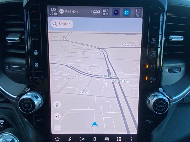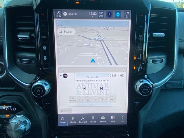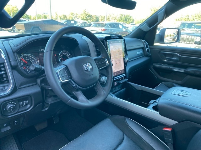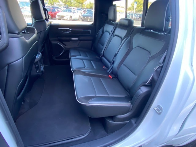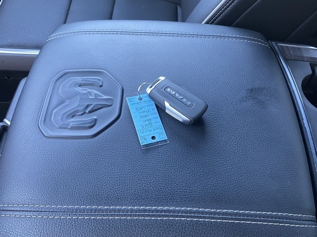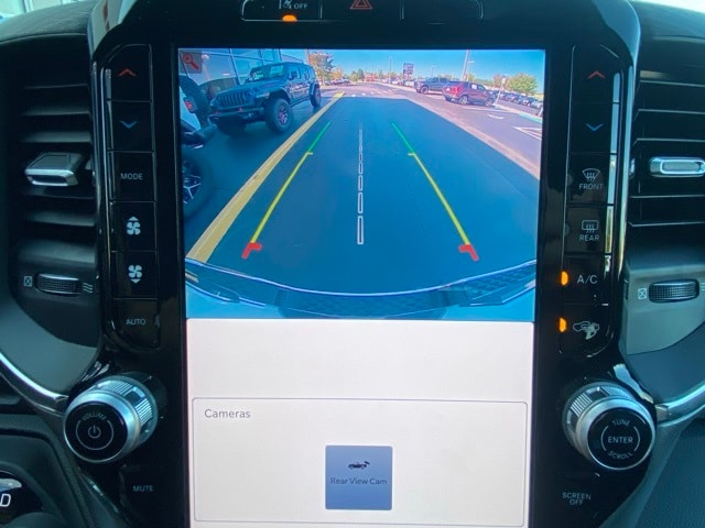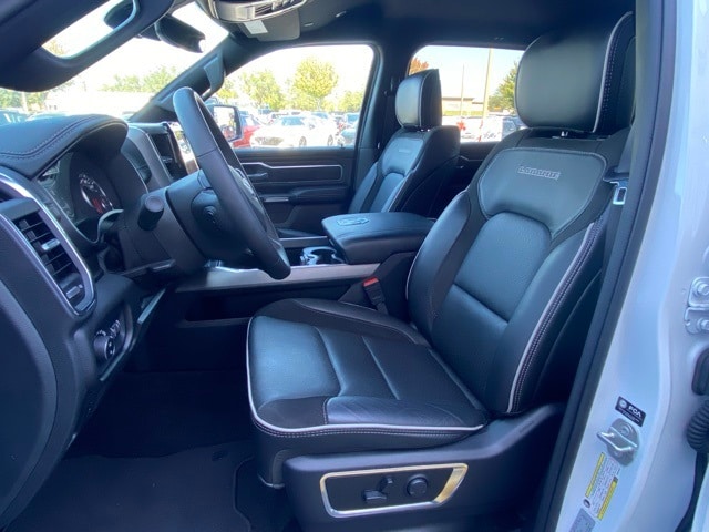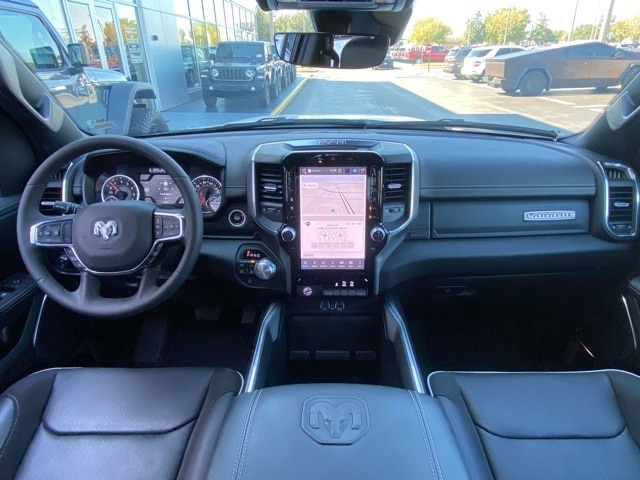 This 1500 is well equipped with Laramie Level 1 Equipment Group (Rain Sensitive Windshield Wipers and Remote Tailgate Release), Quick Order Package 21H Laramie, 10 Speakers, 3 Rear Seat Head Restraints, 3.55 Rear Axle Ratio, 4 Way Front Headrests, 4-Wheel Disc Brakes, 4G LTE Wi-Fi Hot Spot, ABS brakes, Air Conditioning, Alloy wheels, AM/FM radio: SiriusXM with 360L, Apple CarPlay, Apple CarPlay/Android Auto, Audio memory, Auto High-beam Headlights, Auto Power-Folding Mirrors, Auto-dimming door mirrors, Auto-Dimming Exterior Driver Mirror, Auto-dimming Rear-View mirror, Automatic temperature control, Brake assist, Bumpers: chrome, Chrome Exterior Mirrors, Compass, Connected Travel & Traffic Services, Connectivity - US/Canada, Convex Wide-Angle Exterior Mirror Insert, Delay-off headlights, Driver door bin, Driver Seat Memory, Driver vanity mirror, Dual front impact airbags, Dual front side impact airbags, Electronic Stability Control, Exterior Mirrors Courtesy Lamps, Exterior Mirrors w/Heating Element, Exterior Mirrors w/Memory, Exterior Mirrors w/Supplemental Signals, Front anti-roll bar, Front Center Armrest w/Storage, Front dual zone A/C, Front fog lights, Front License Plate Bracket, Front reading lights, Front Seat Back Map Pockets, Front wheel independent suspension, Fully automatic headlights, Garage door transmitter, Google Android Auto, GPS Antenna Input, GPS Navigation, HD Radio, Heated door mirrors, Heated Front Seats, Heated front seats, Heated rear seats, Heated Steering Wheel, Heated steering wheel, Illuminated entry, Integrated Voice Command w/Bluetooth, Leather steering wheel, Leather Trim 40/20/40 Bench Seat, Low tire pressure warning, Manufacturer's Statement of Origin, Memory seat, Navigation System, Occupant sensing airbag, Outside temperature display, Overhead airbag, Overhead console, Panic alarm, ParkView Rear Back-Up Camera, Passenger door bin, Passenger vanity mirror, Power 2-Way Driver Lumbar Adjust, Power 2-Way Passenger Lumbar Adjust, Power Adjust 8-Way Front Passenger Seat, Power door mirrors, Power driver seat, Power passenger seat, Power steering, Power windows, Radio data system, Radio: Uconnect 5 Nav w/12.0" Display, RAM Grille Badge - Chrome, Rear anti-roll bar, Rear reading lights, Rear seat center armrest, Rear step bumper, Remote keyless entry, Security system, SiriusXM w/360L, Speed control, Split folding rear seat, Steering wheel mounted audio controls, Tachometer, Telescoping steering wheel, Tilt steering wheel, Traction control, Trip computer, Turn signal indicator mirrors, USB Host Flip, Variably intermittent wipers, Ventilated Front Seats, Ventilated front seats, Voltmeter, and Wheels: 20" x 9" Premium Paint/Polish.