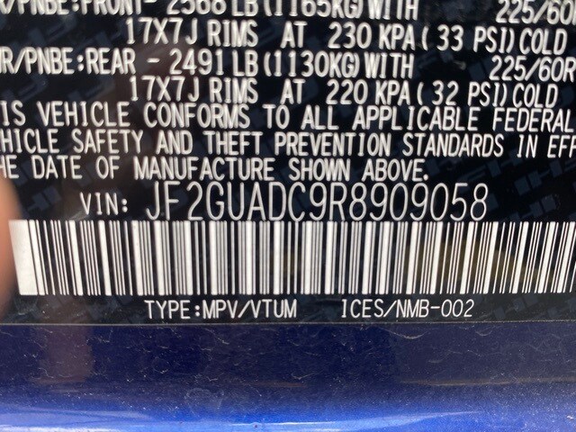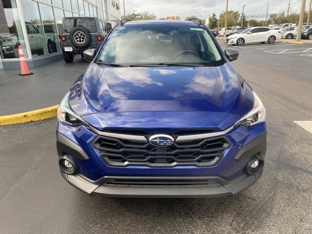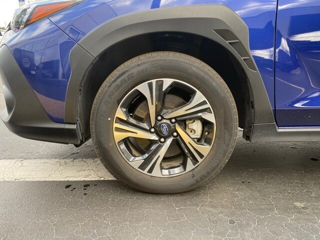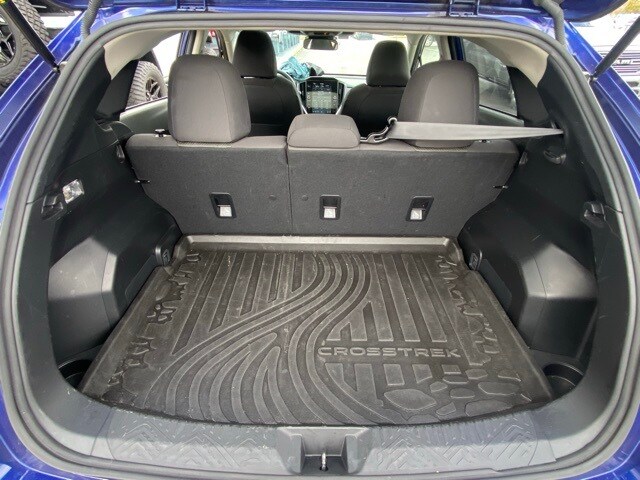 This Crosstrek is well equipped with All-Weather Package (Heated Exterior Mirrors, Heated Front Seats, and Heated Wipers), BSD/RCTA & Moonrf & All Weather Pkg & Pwr Dr. Seat (10-Way Power Driver's Seat, Blind Spot Detection w/Rear Cross-Traffic Alert, and Power Moonroof), 3.90 Axle Ratio, 4-Wheel Disc Brakes, 6 Speakers, ABS brakes, Air Conditioning, Alloy wheels, AM/FM radio: SiriusXM, Anti-whiplash front head restraints, Auto High-beam Headlights, Automatic temperature control, Brake assist, Bumpers: body-color, Driver door bin, Driver vanity mirror, Dual front impact airbags, Dual front side impact airbags, Electronic Stability Control, Emergency communication system: STARLINK Safety and Security (Subscription Required), Exterior Parking Camera Rear, Four wheel independent suspension, Front anti-roll bar, Front Bucket Seats, Front Center Armrest, Front dual zone A/C, Front fog lights, Front reading lights, Fully automatic headlights, Illuminated entry, Knee airbag, Low tire pressure warning, Occupant sensing airbag, Outside temperature display, Overhead airbag, Overhead console, Panic alarm, Passenger door bin, Passenger vanity mirror, Power door mirrors, Power steering, Power windows, Premium Cloth Upholstery, Radio data system, Radio: Subaru STARLINK 11.6" Multimedia Plus Sys, Rear anti-roll bar, Rear seat center armrest, Rear window defroster, Rear window wiper, Remote keyless entry, Security system, Speed control, Speed-sensing steering, Split folding rear seat, Spoiler, STARLINK/Apple CarPlay/Android Auto, Steering wheel mounted audio controls, Tachometer, Telescoping steering wheel, Tilt steering wheel, Traction control, Trip computer, Turn signal indicator mirrors, Variably intermittent wipers, and Wheels: 17" x 7.0J Dark Gray Aluminum Alloy.